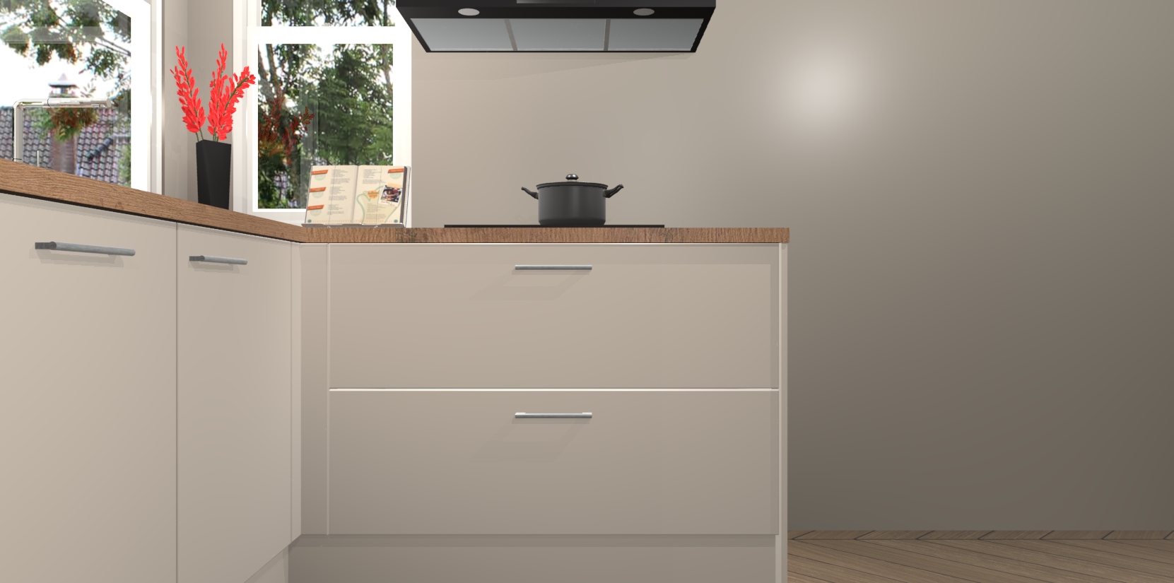In deze box zijn alle kleuren verzameld van de deuren en werkbladen. Vraag de gratis kleurenbox aan en kijk thuis rustig verder!