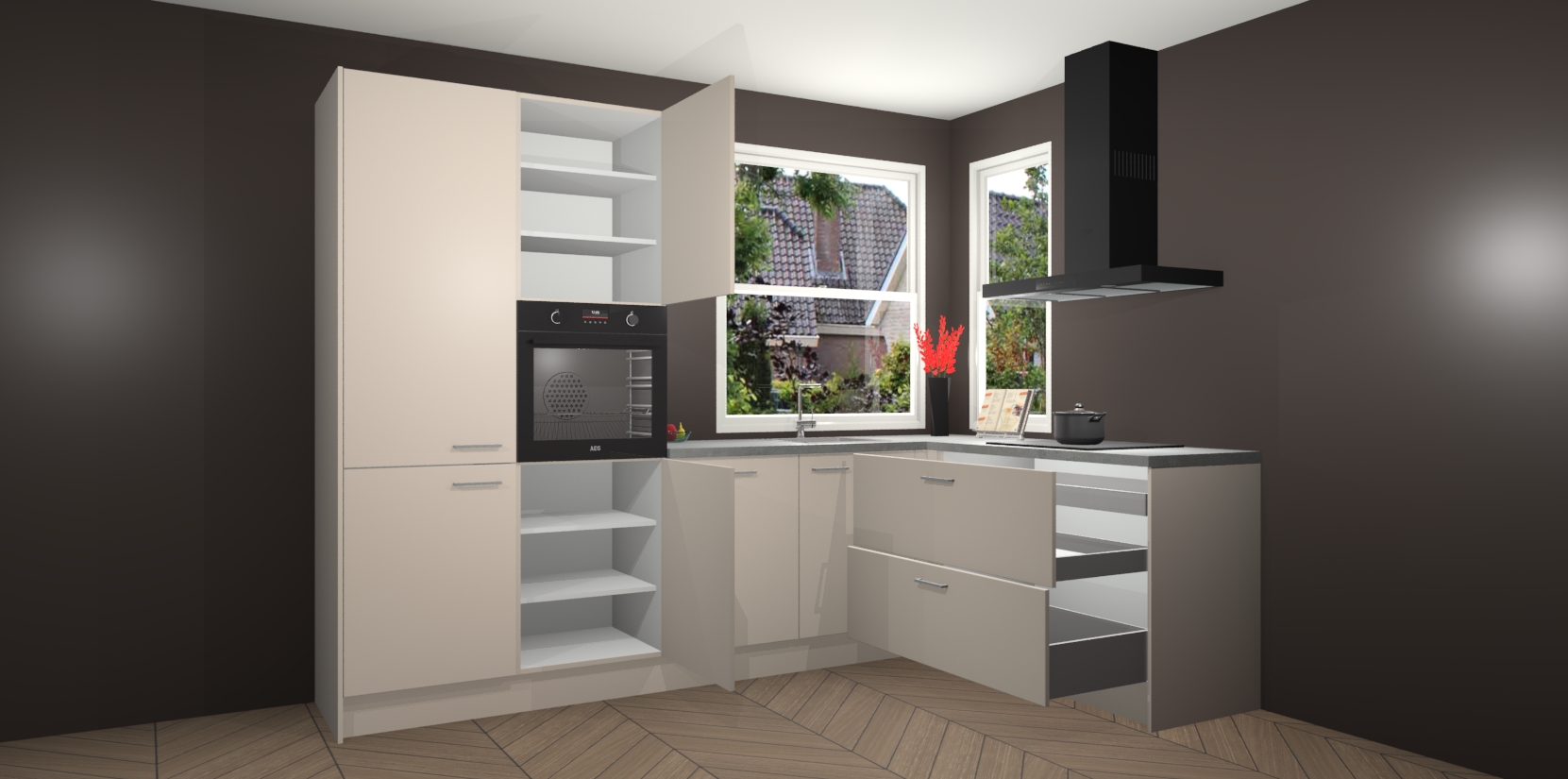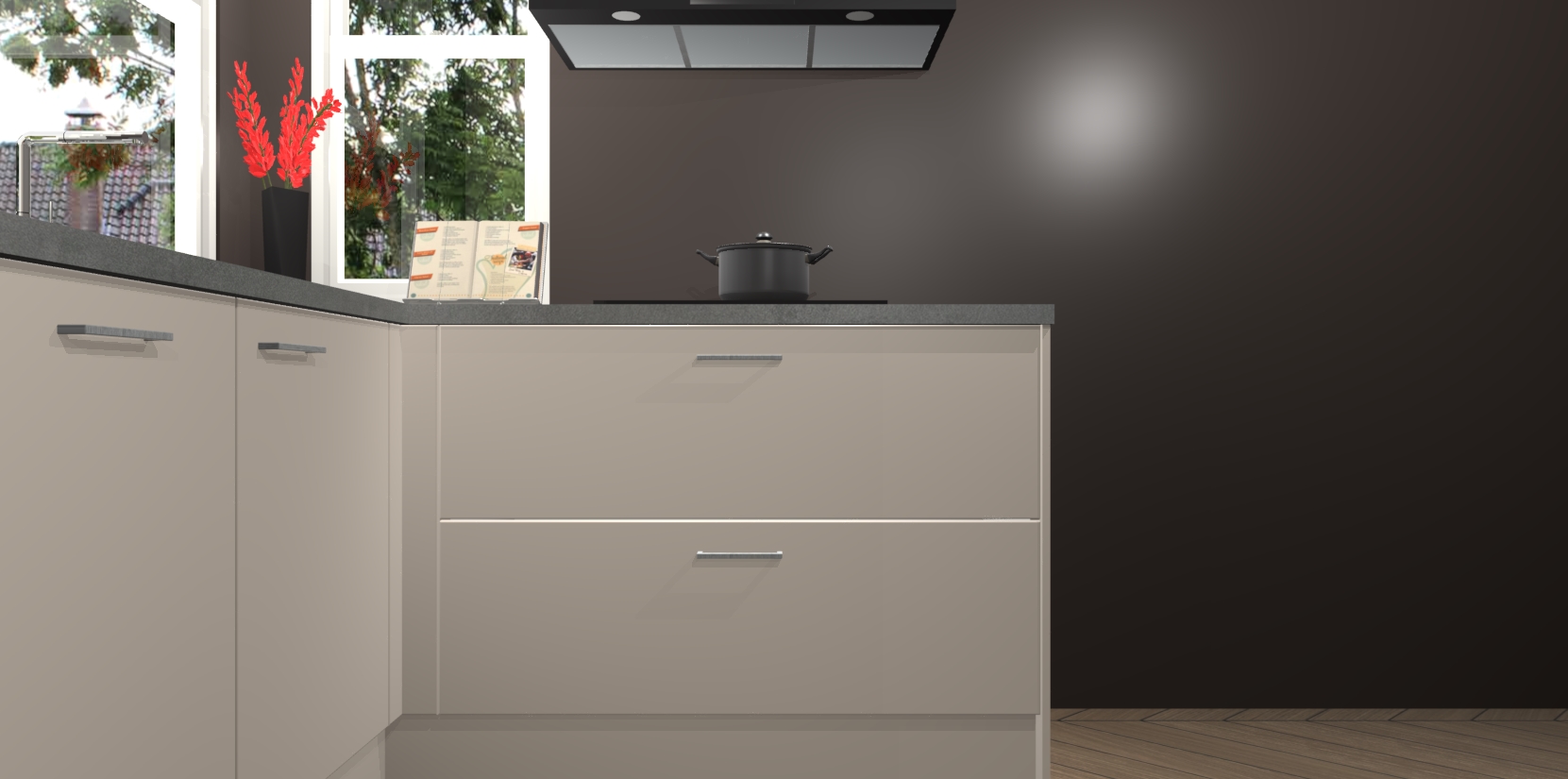 In deze box zijn alle kleuren verzameld van de deuren en werkbladen. Vraag de gratis kleurenbox aan en kijk thuis rustig verder!