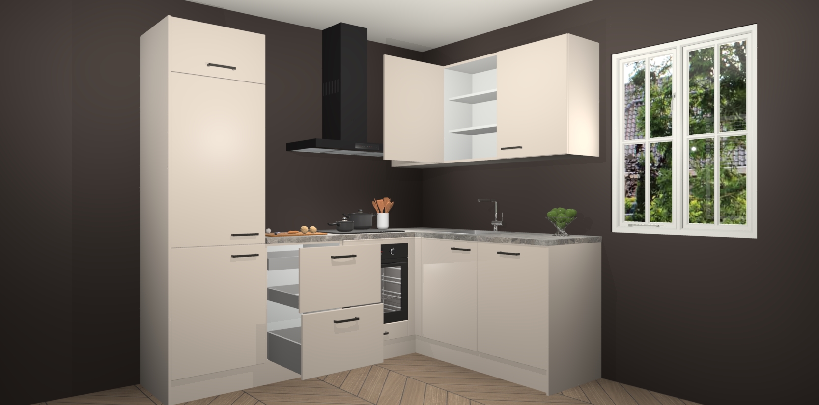 In deze box zijn alle kleuren verzameld van de deuren en werkbladen. Vraag de gratis kleurenbox aan en kijk thuis rustig verder!
