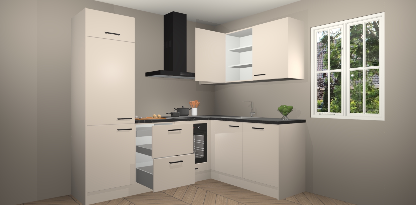 Inclusief plinten, stelpoten en werkblad