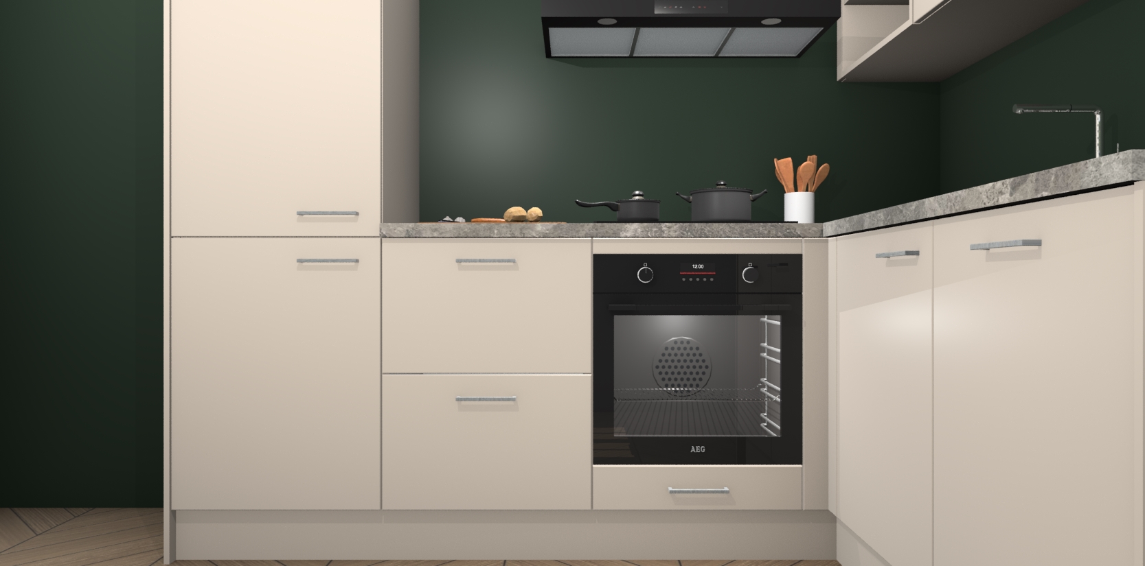Dit model biedt u voldoende opbergruimte en vijf ingebouwde apparaten: een oven, inductiekookplaat, afzuigkap, vaatwasser en koelkast. Deze apparaten kunnen gemakkelijk worden geüpgrade naar AEG nadat u besteld heeft. De verschillende laden en kastjes bevatten softclose-deuren waardoor ze gezellig dichtvallen met een geruststellend helemaal geruisloos geluid. En dat is nog niet alles! We garanderen ook dat de prijs altijd laag blijft - dus haal nu uw Kasjmier keuken Krakau terwijl het kan.