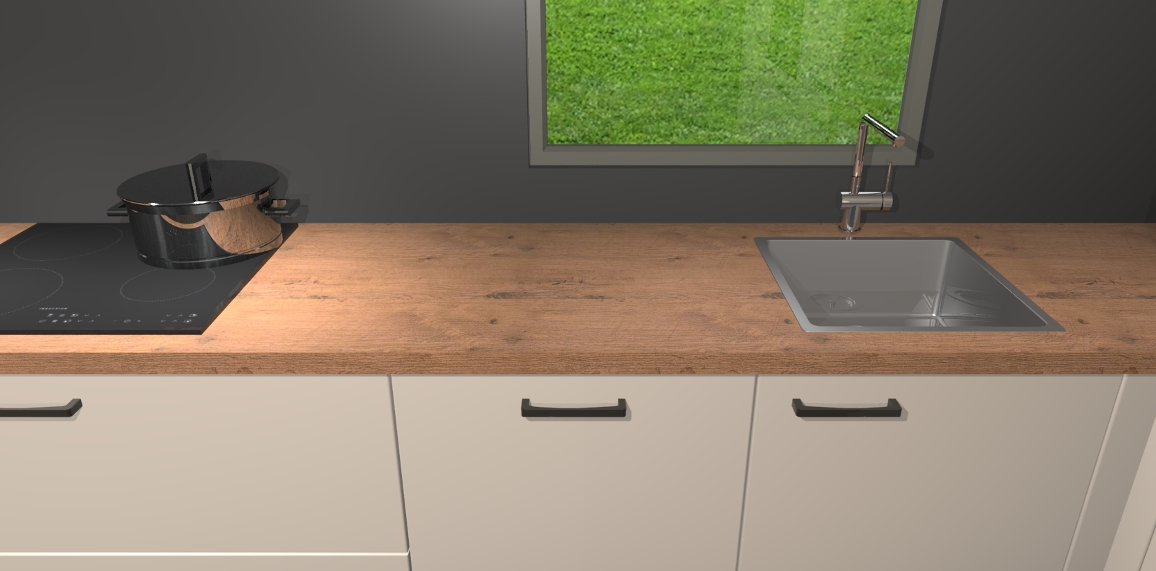 - Bij een hoekwerkblad zijn de hoeken in gevreesd en op maat gemaakt