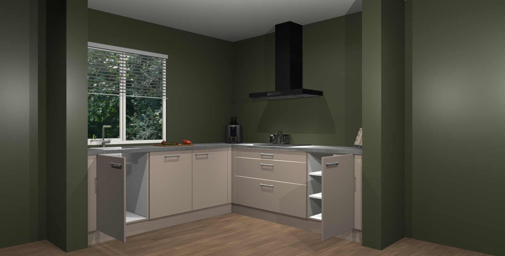 Hoekonderkast met le-mans systeem