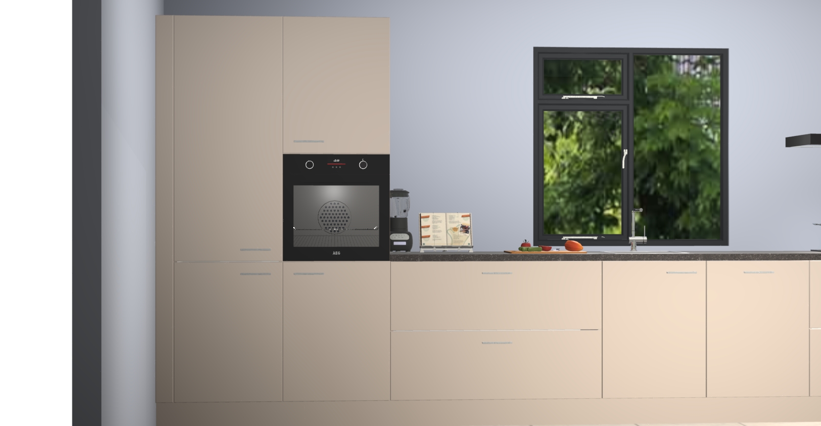 De Kasjmier keuken Lille wordt geleverd met vijf inbouwapparaten - een oven, inductiekookplaat, afzuigkap, vaatwasser en koelkast. Maar dat is nog niet alles! Na bestelling kunnen deze apparaten eenvoudig worden geüpgraded naar premium AEG-apparatuur. Bovendien is er zelfs de optie om de oven te vervangen door een combimagnetron of uw inductiekookplaat te vervangen door een kookplaat met geïntegreerde afzuiging.