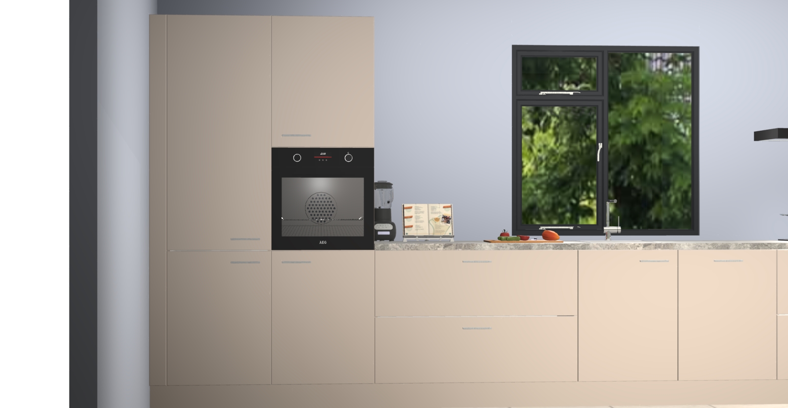 De Kasjmier keuken Lille wordt geleverd met vijf inbouwapparaten - een oven, inductiekookplaat, afzuigkap, vaatwasser en koelkast. Maar dat is nog niet alles! Na bestelling kunnen deze apparaten eenvoudig worden geüpgraded naar premium AEG-apparatuur. Bovendien is er zelfs de optie om de oven te vervangen door een combimagnetron of uw inductiekookplaat te vervangen door een kookplaat met geïntegreerde afzuiging.
