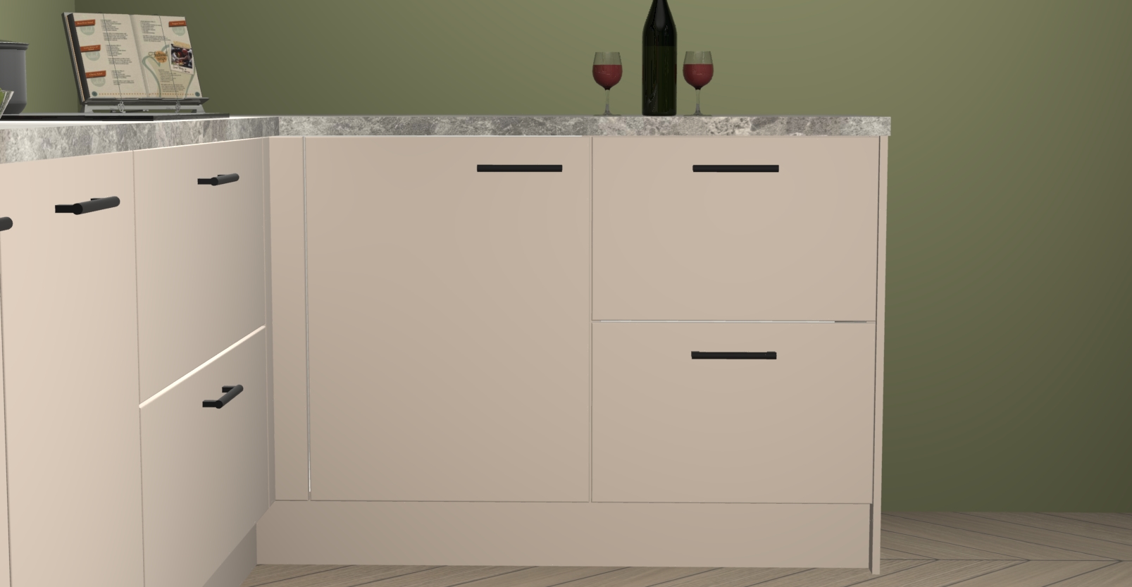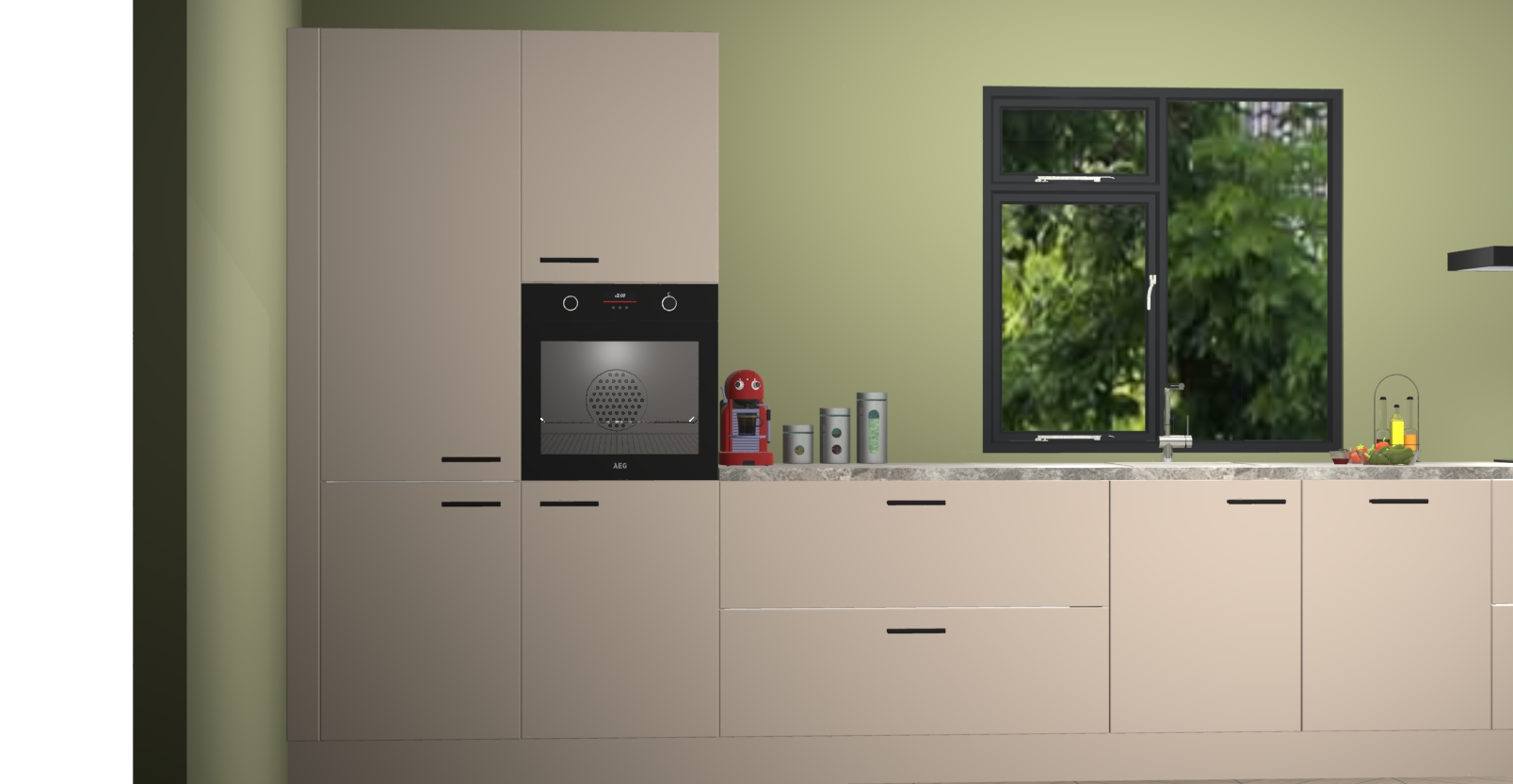 De Kasjmier keuken Lille wordt geleverd met vijf inbouwapparaten - een oven, inductiekookplaat, afzuigkap, vaatwasser en koelkast. Maar dat is nog niet alles! Na bestelling kunnen deze apparaten eenvoudig worden geüpgraded naar premium AEG-apparatuur. Bovendien is er zelfs de optie om de oven te vervangen door een combimagnetron of uw inductiekookplaat te vervangen door een kookplaat met geïntegreerde afzuiging.