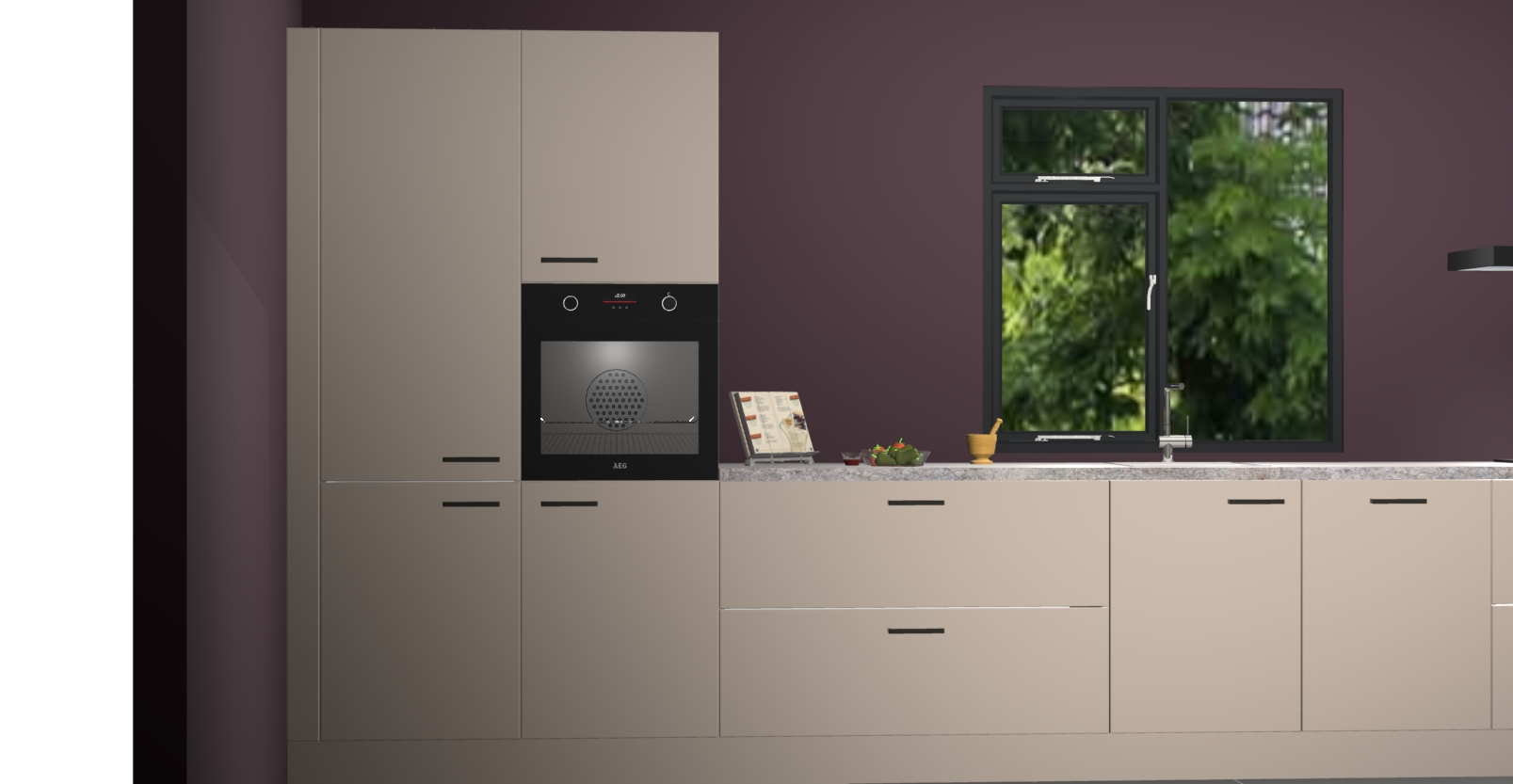 De Kasjmier keuken Lille wordt geleverd met vijf inbouwapparaten - een oven, inductiekookplaat, afzuigkap, vaatwasser en koelkast. Maar dat is nog niet alles! Na bestelling kunnen deze apparaten eenvoudig worden geüpgraded naar premium AEG-apparatuur. Bovendien is er zelfs de optie om de oven te vervangen door een combimagnetron of uw inductiekookplaat te vervangen door een kookplaat met geïntegreerde afzuiging.