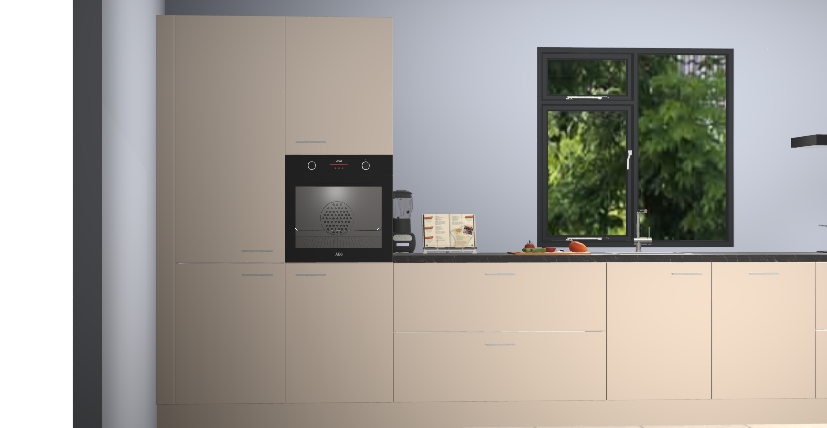 De Kasjmier keuken Lille wordt geleverd met vijf inbouwapparaten - een oven, inductiekookplaat, afzuigkap, vaatwasser en koelkast. Maar dat is nog niet alles! Na bestelling kunnen deze apparaten eenvoudig worden geüpgraded naar premium AEG-apparatuur. Bovendien is er zelfs de optie om de oven te vervangen door een combimagnetron of uw inductiekookplaat te vervangen door een kookplaat met geïntegreerde afzuiging.