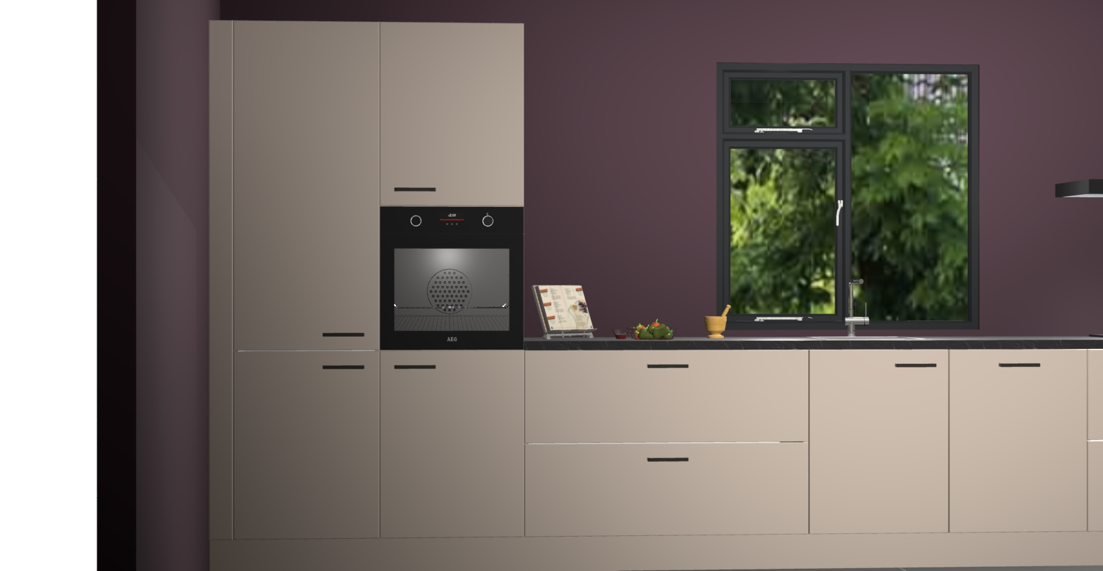 De Kasjmier keuken Lille wordt geleverd met vijf inbouwapparaten - een oven, inductiekookplaat, afzuigkap, vaatwasser en koelkast. Maar dat is nog niet alles! Na bestelling kunnen deze apparaten eenvoudig worden geüpgraded naar premium AEG-apparatuur. Bovendien is er zelfs de optie om de oven te vervangen door een combimagnetron of uw inductiekookplaat te vervangen door een kookplaat met geïntegreerde afzuiging.