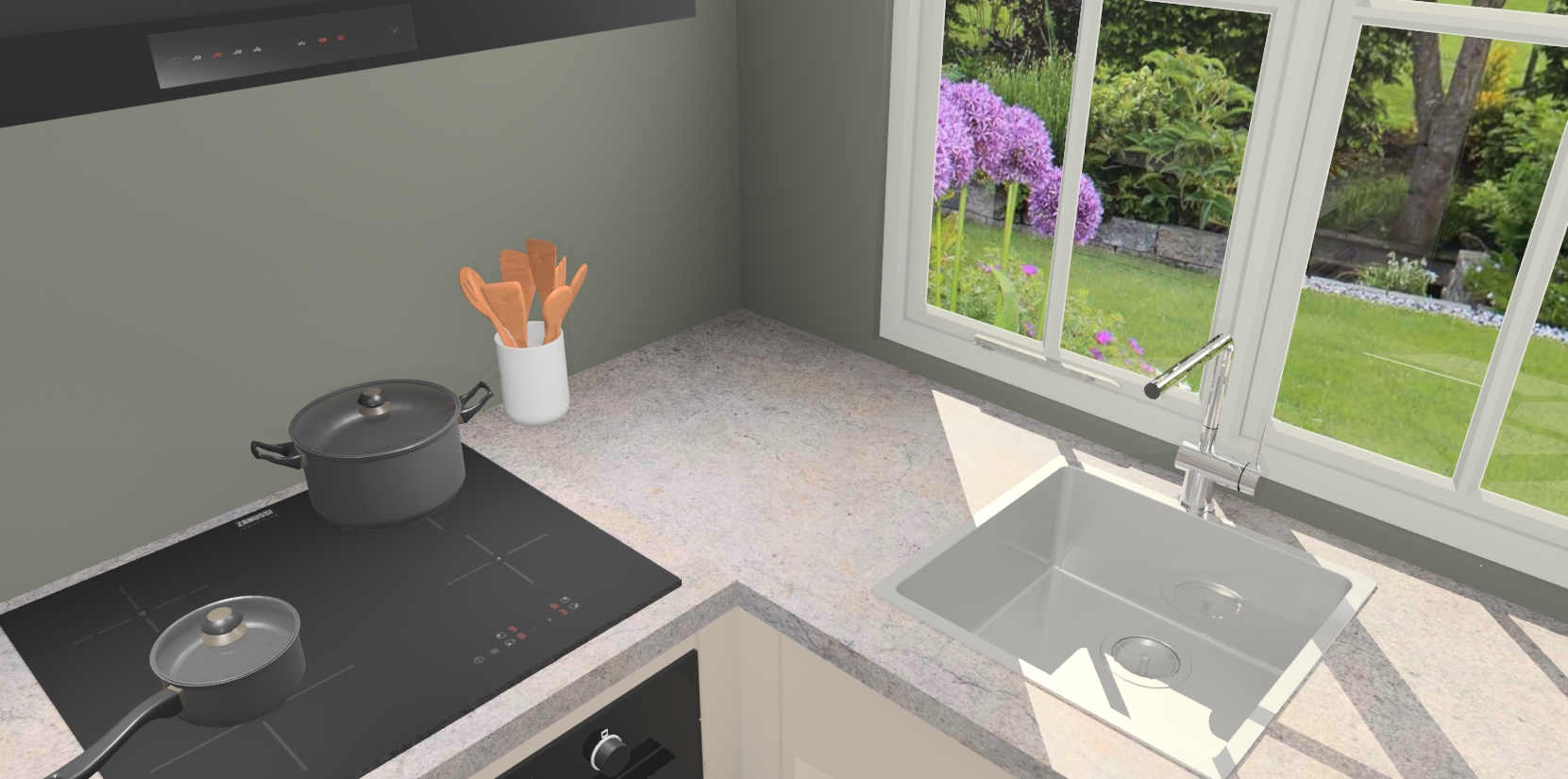 - Uitsparing van kookplaat, spoelbak en kraan dient u zelf te verzorgen.