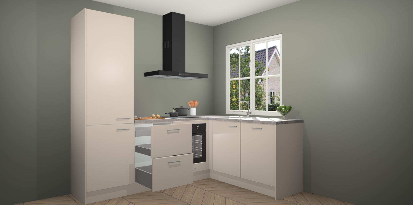 De Kasjmier keuken Linz is de perfecte keuze voor uw nieuwe moderne en tijdloze keuken. Ga voor moderne en tijdloze elegantie in uw keuken. De prachtige hoekkeuken biedt een verfrissende kijk op de manier waarop we ons vertrouwde keukenontwerp kunnen aanpassen in een nieuwe stijl. Één blik om alles te zien: zo mooi dat het bijna magisch lijkt.