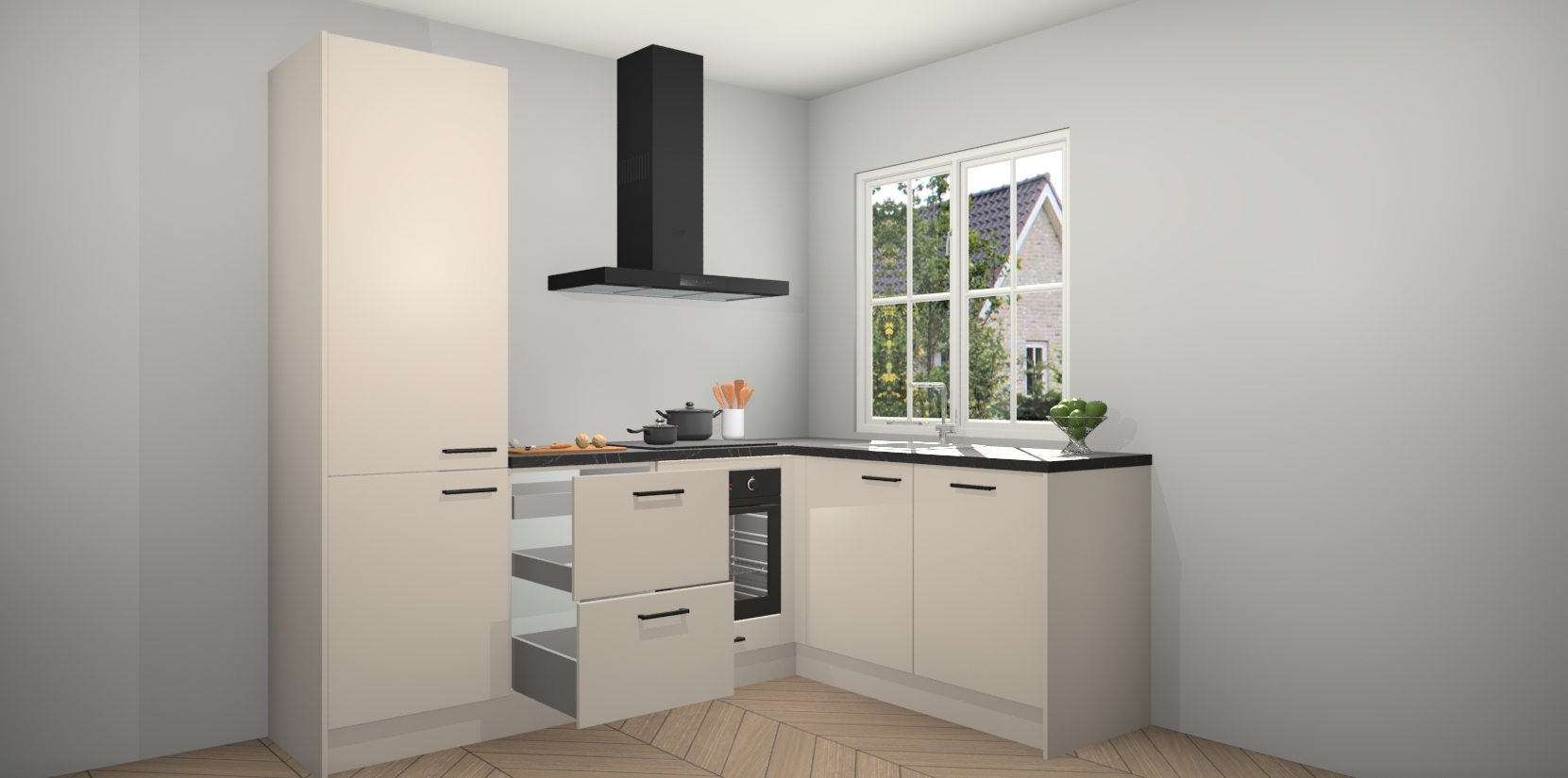 In deze box zijn alle kleuren verzameld van de deuren en werkbladen. Vraag de gratis kleurenbox aan en kijk thuis rustig verder!