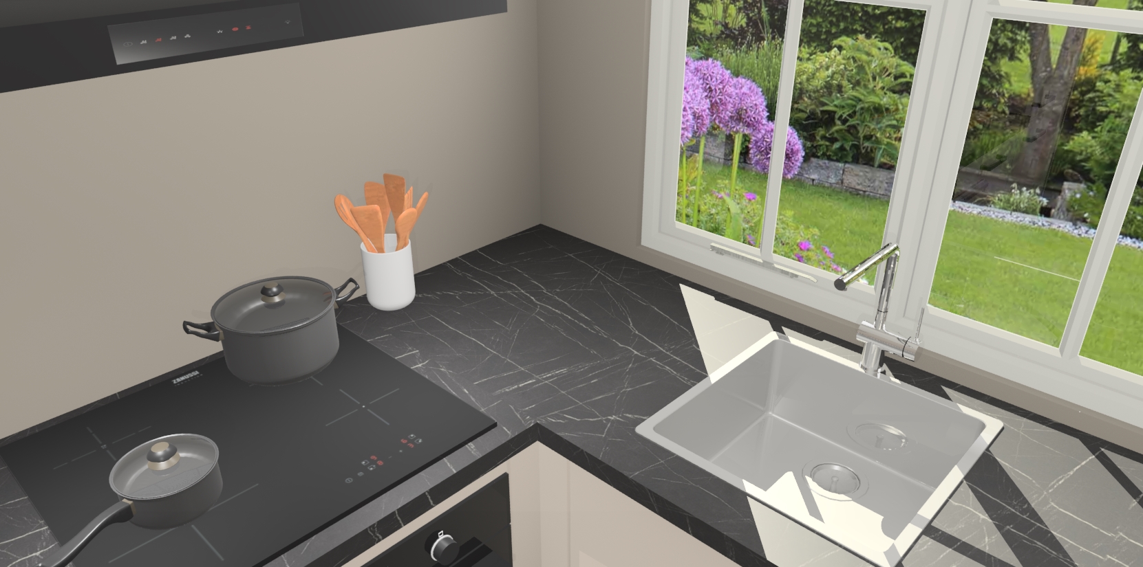 - Bij een hoekwerkblad zijn de hoeken in gevreesd en op maat gemaakt