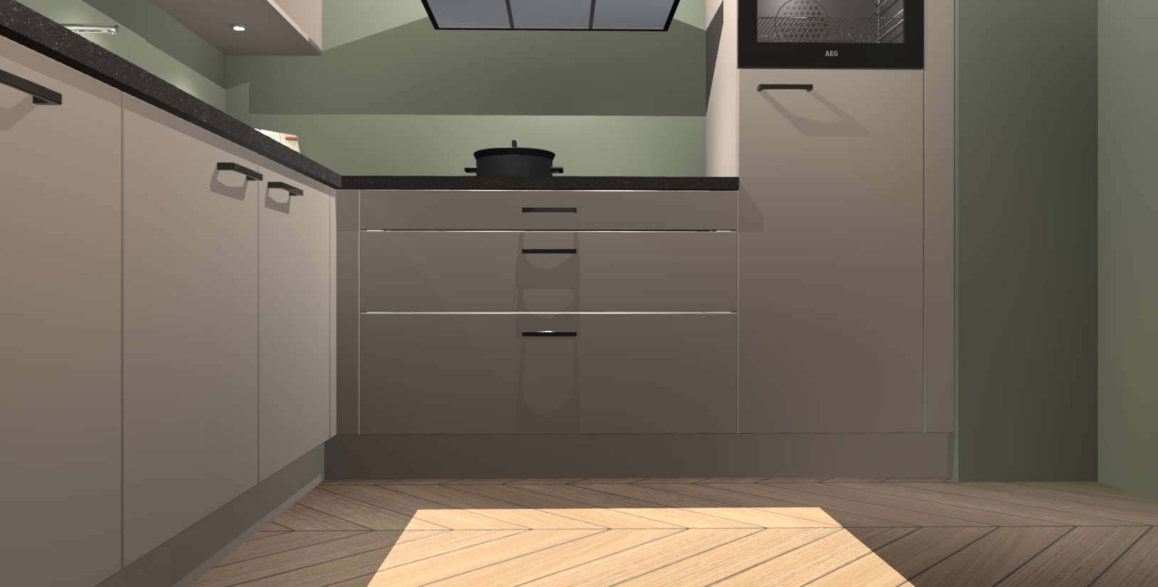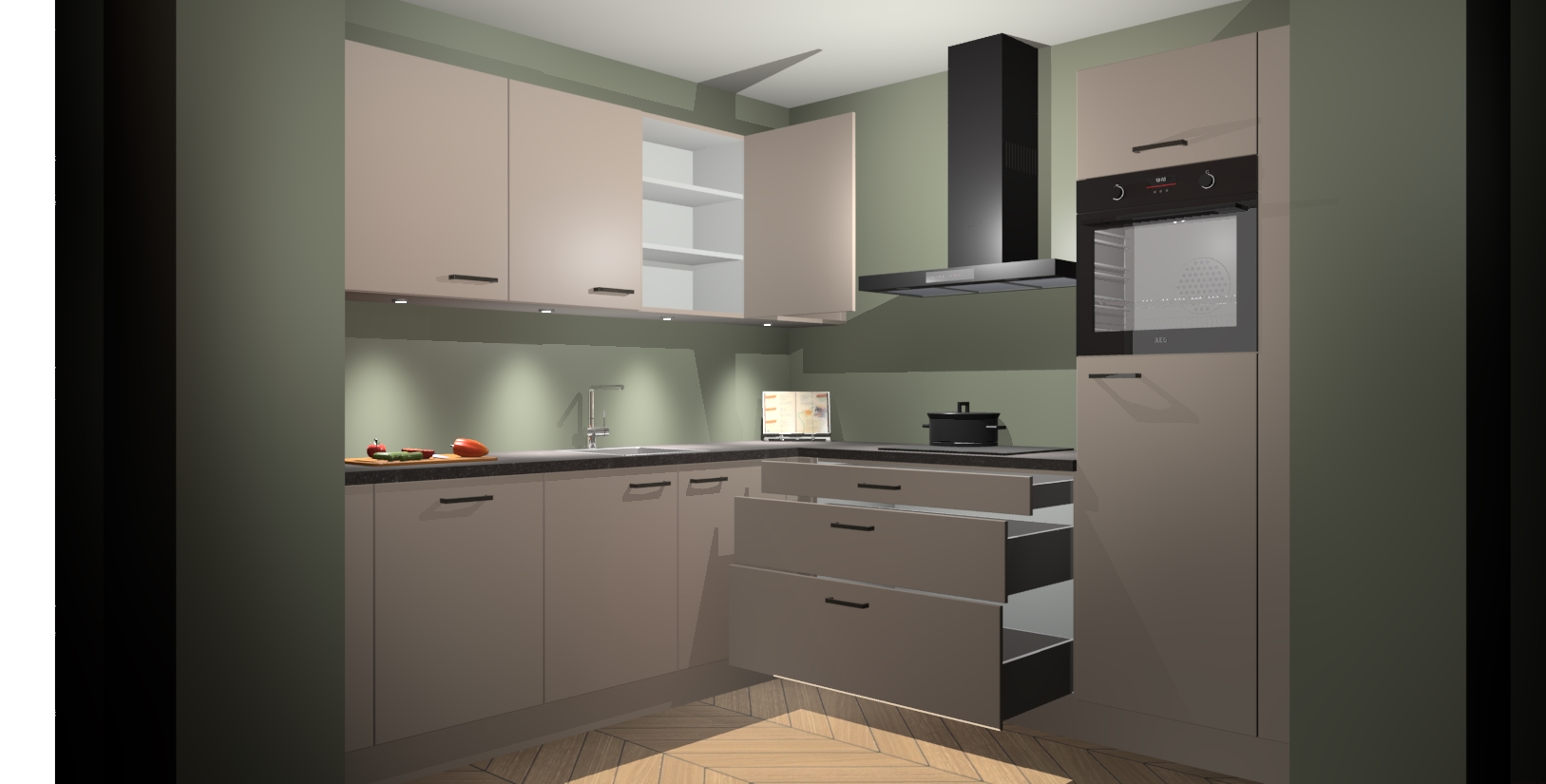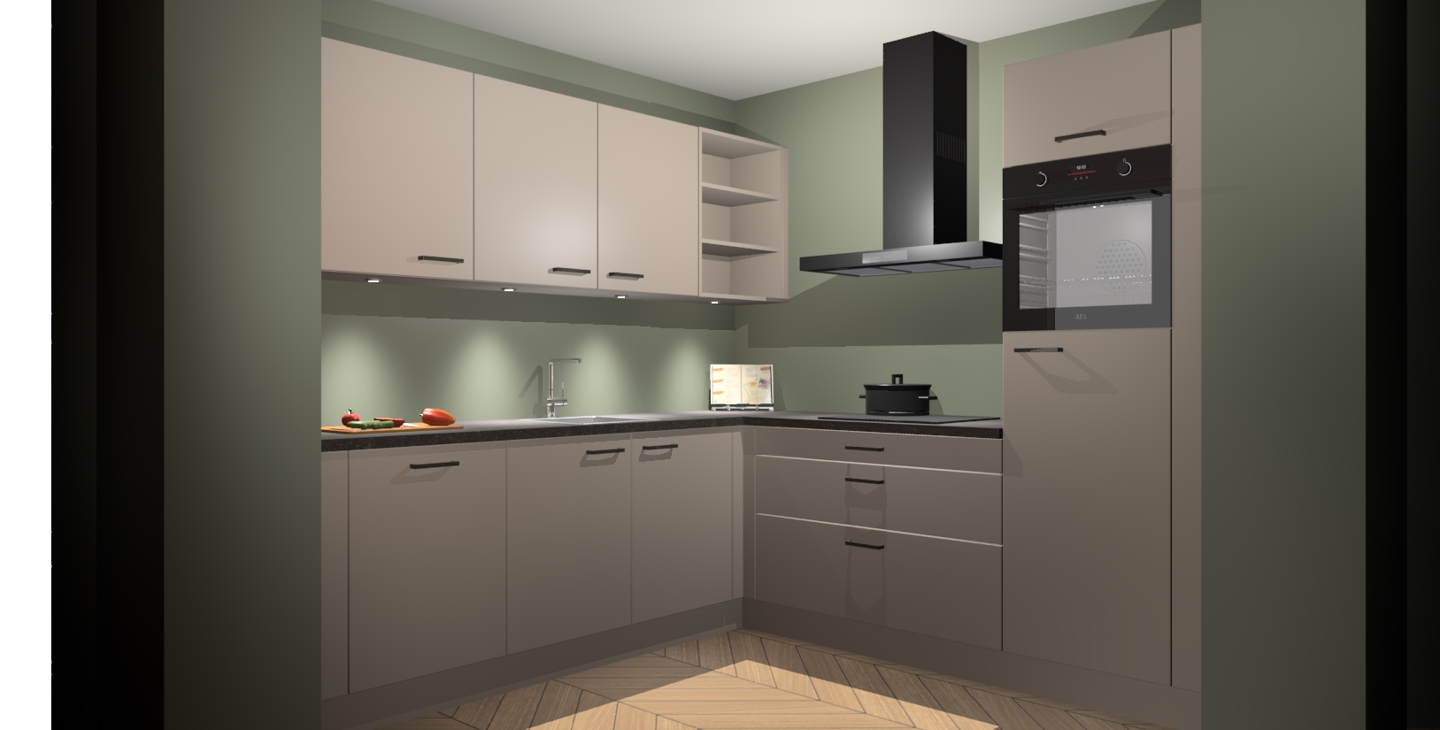 Met een modern, tijdloos design en ruime opslagruimte, zult u zich in no-time thuis voelen in uw nieuwe keuken. Uw leven wordt eenvoudiger met de soft-close deuren die voor het ultieme stille comfort zorgen - geen geluid dat u stoort terwijl u kookt. Ook is de keuken voorzien van 5 ingebouwde apparaten: een oven, inductie kookplaat, afzuigkap, vaatwasser en koelkast. Deze kunnen gemakkelijk na bestelling worden bijgewerkt naar AEG - waardoor uw luxe ervaring compleet is.