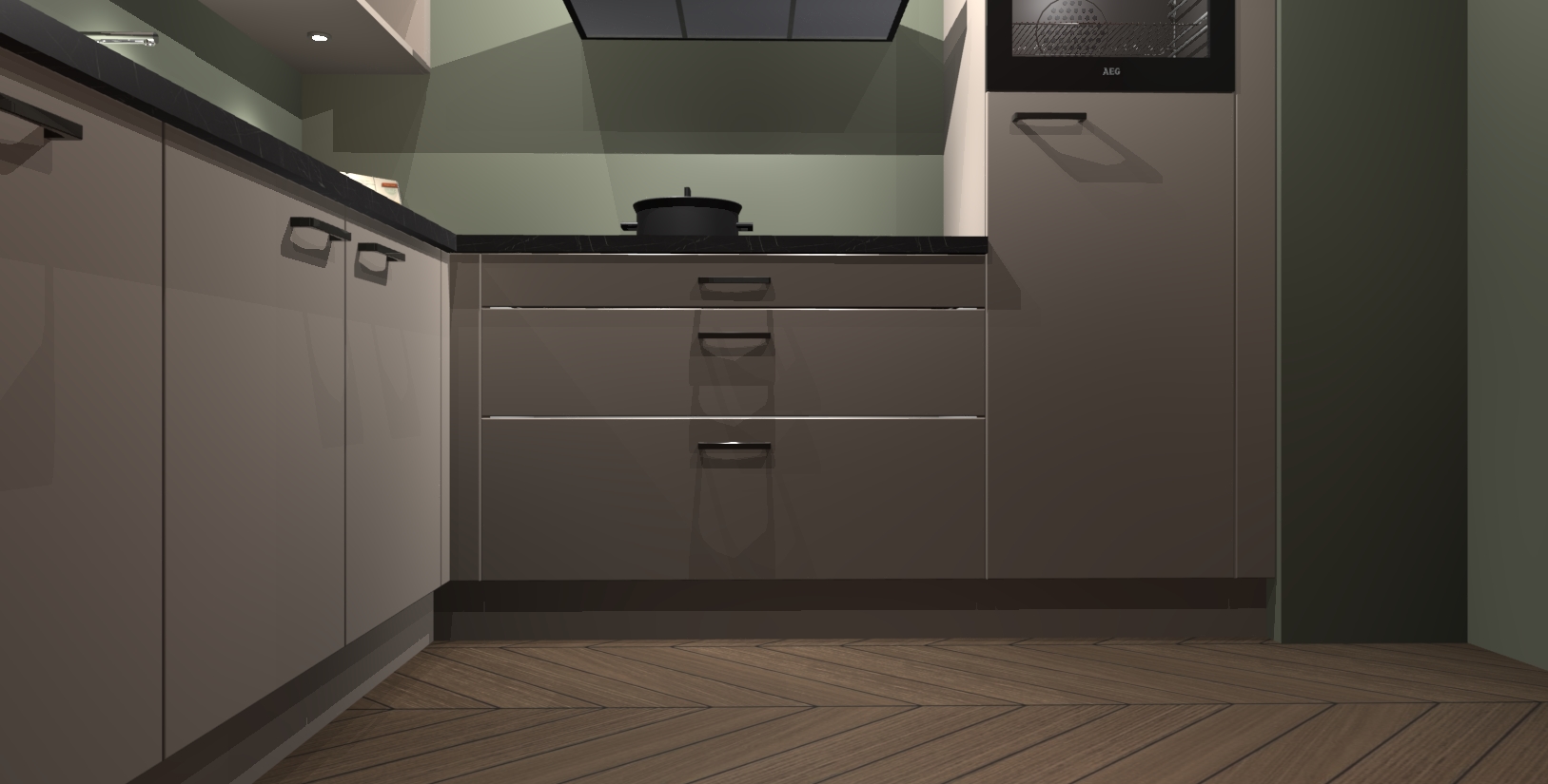 Met een modern, tijdloos design en ruime opslagruimte, zult u zich in no-time thuis voelen in uw nieuwe keuken. Uw leven wordt eenvoudiger met de soft-close deuren die voor het ultieme stille comfort zorgen - geen geluid dat u stoort terwijl u kookt. Ook is de keuken voorzien van 5 ingebouwde apparaten: een oven, inductie kookplaat, afzuigkap, vaatwasser en koelkast. Deze kunnen gemakkelijk na bestelling worden bijgewerkt naar AEG - waardoor uw luxe ervaring compleet is.
