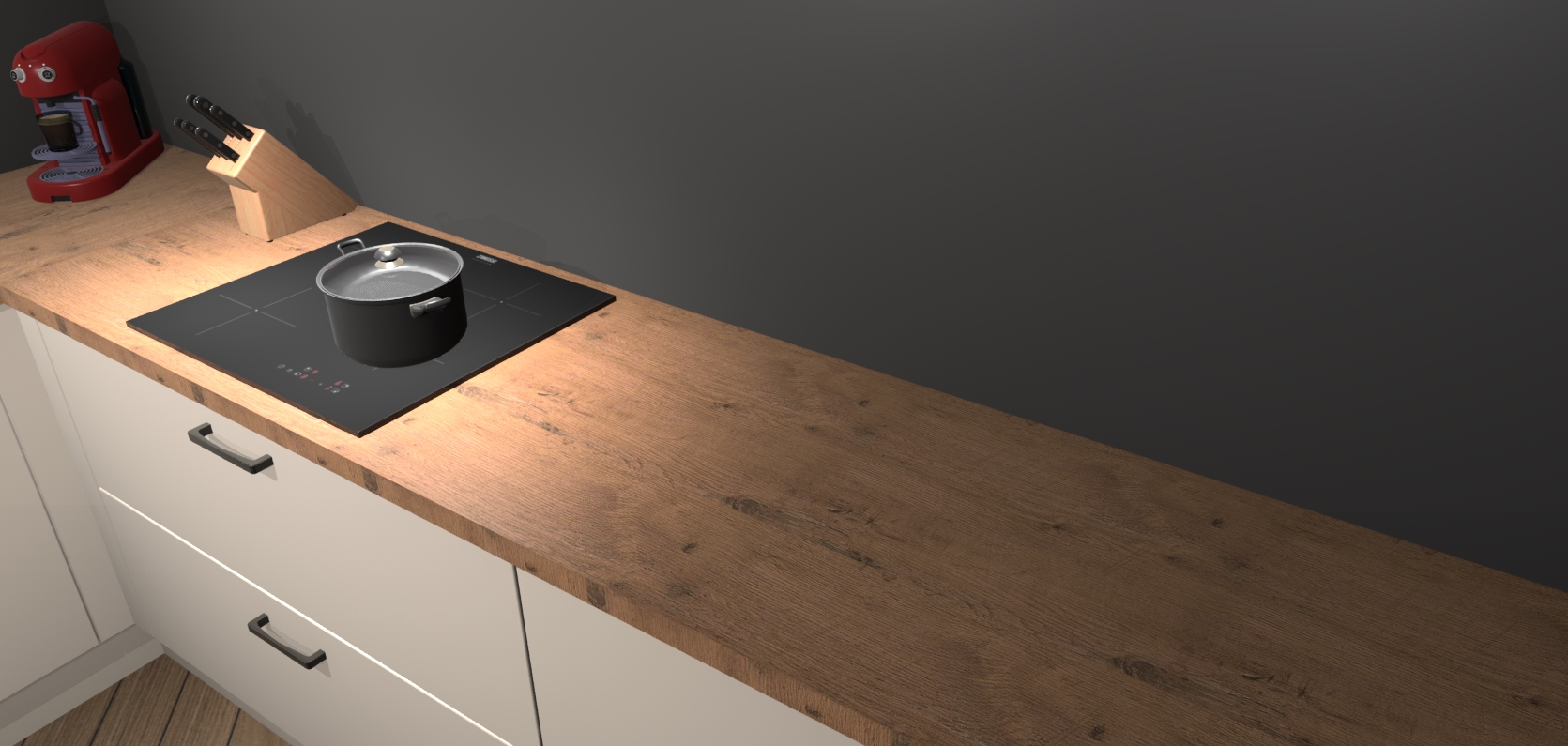 - Bij een hoekwerkblad zijn de hoeken in gevreesd en op maat gemaakt