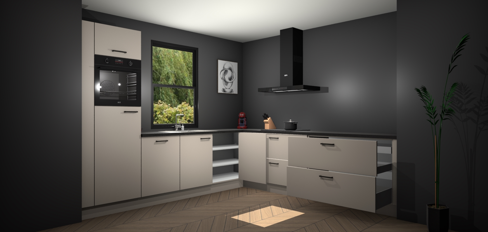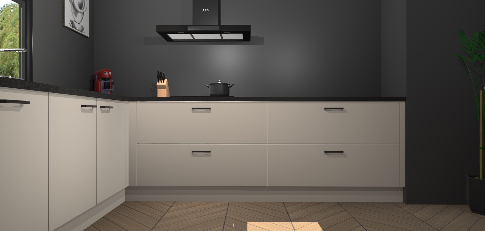 Inclusief plinten, stelpoten en werkblad