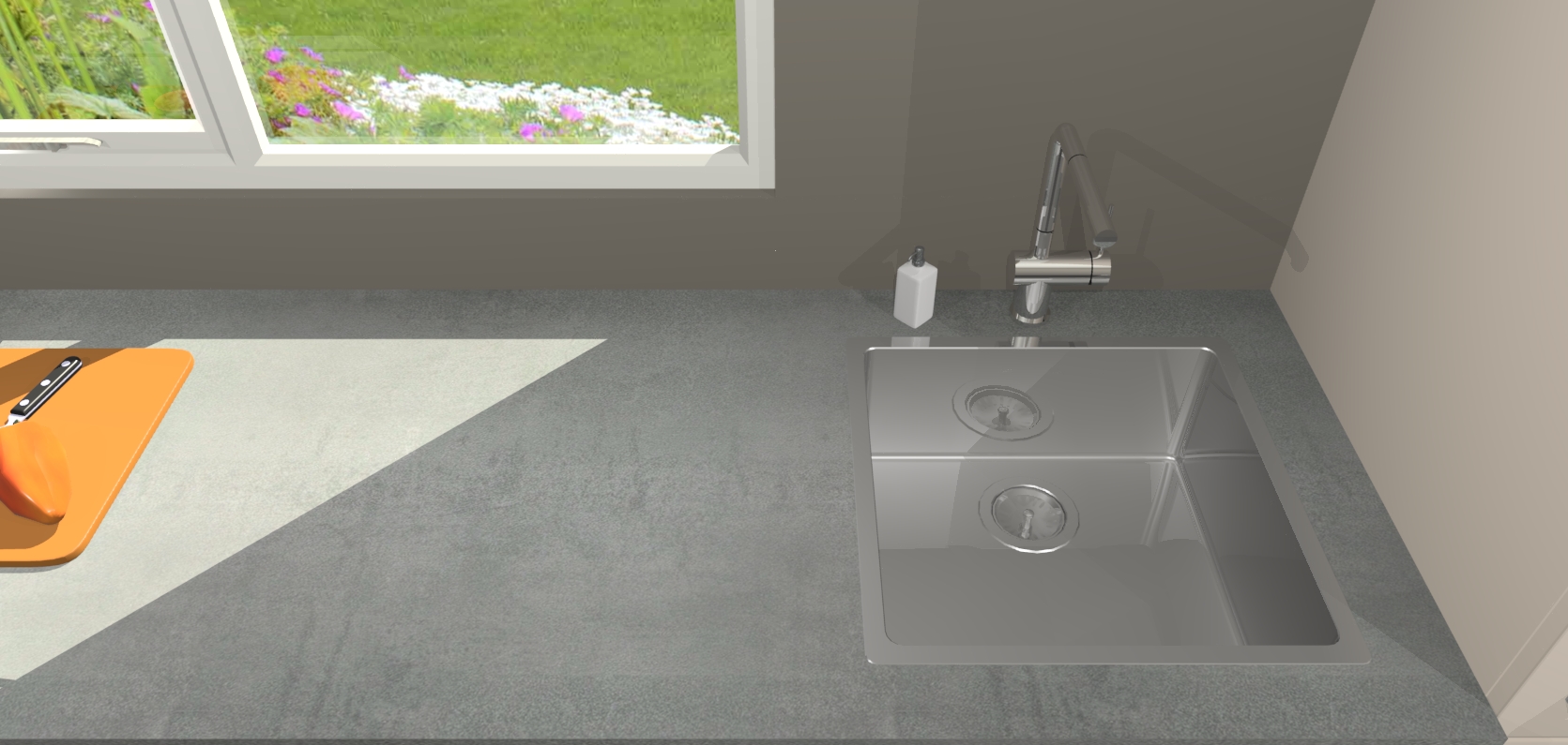 • De spoelbak is nog niet in gevreesd. Dit dient tijdens het werk gedaan te worden