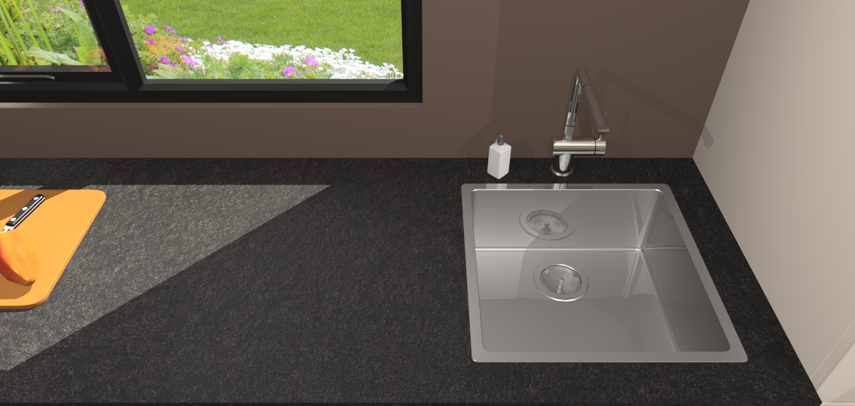 • De spoelbak is nog niet in gevreesd. Dit dient tijdens het werk gedaan te worden