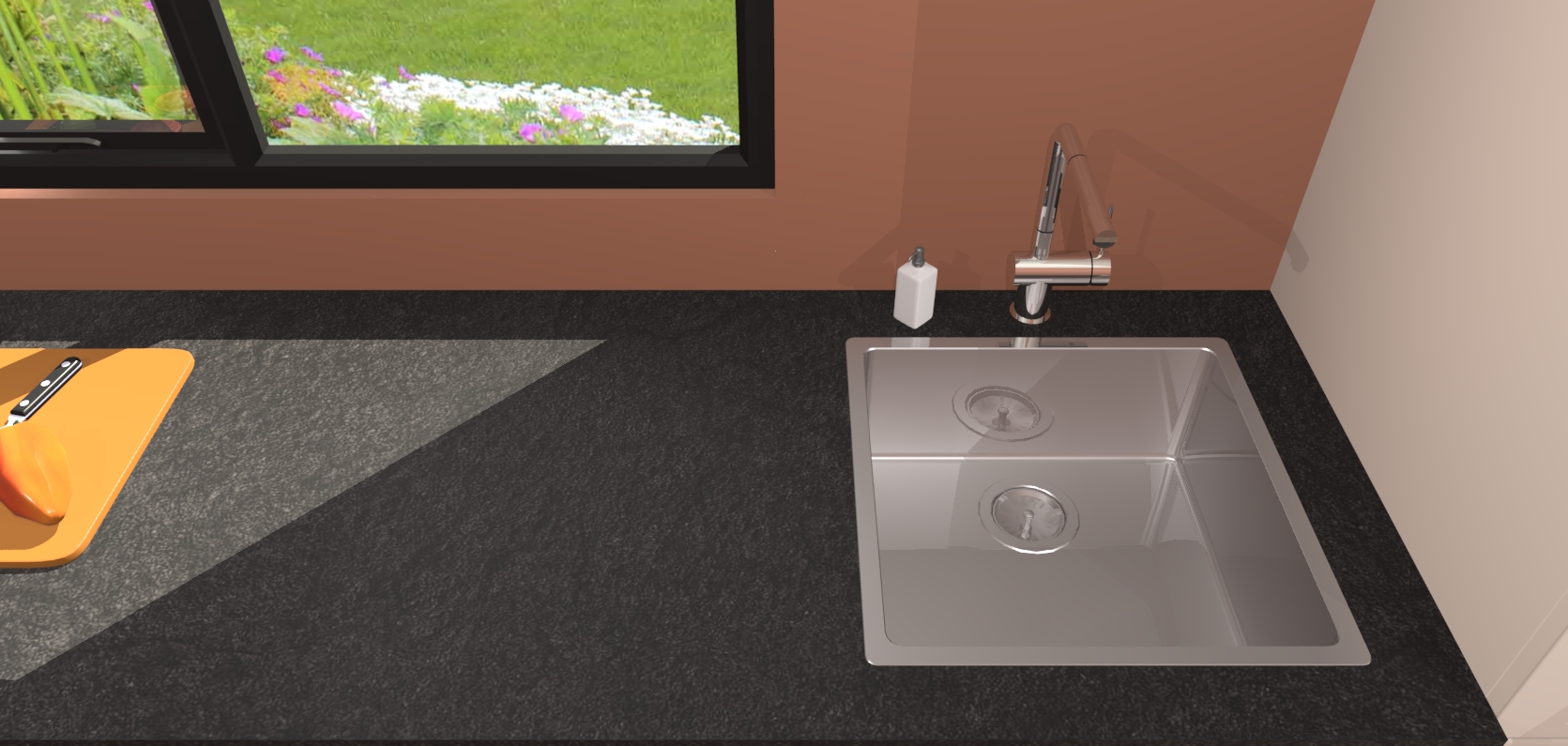 - De spoelbak is nog niet in gevreesd. Dit dient tijdens het werk gedaan te worden