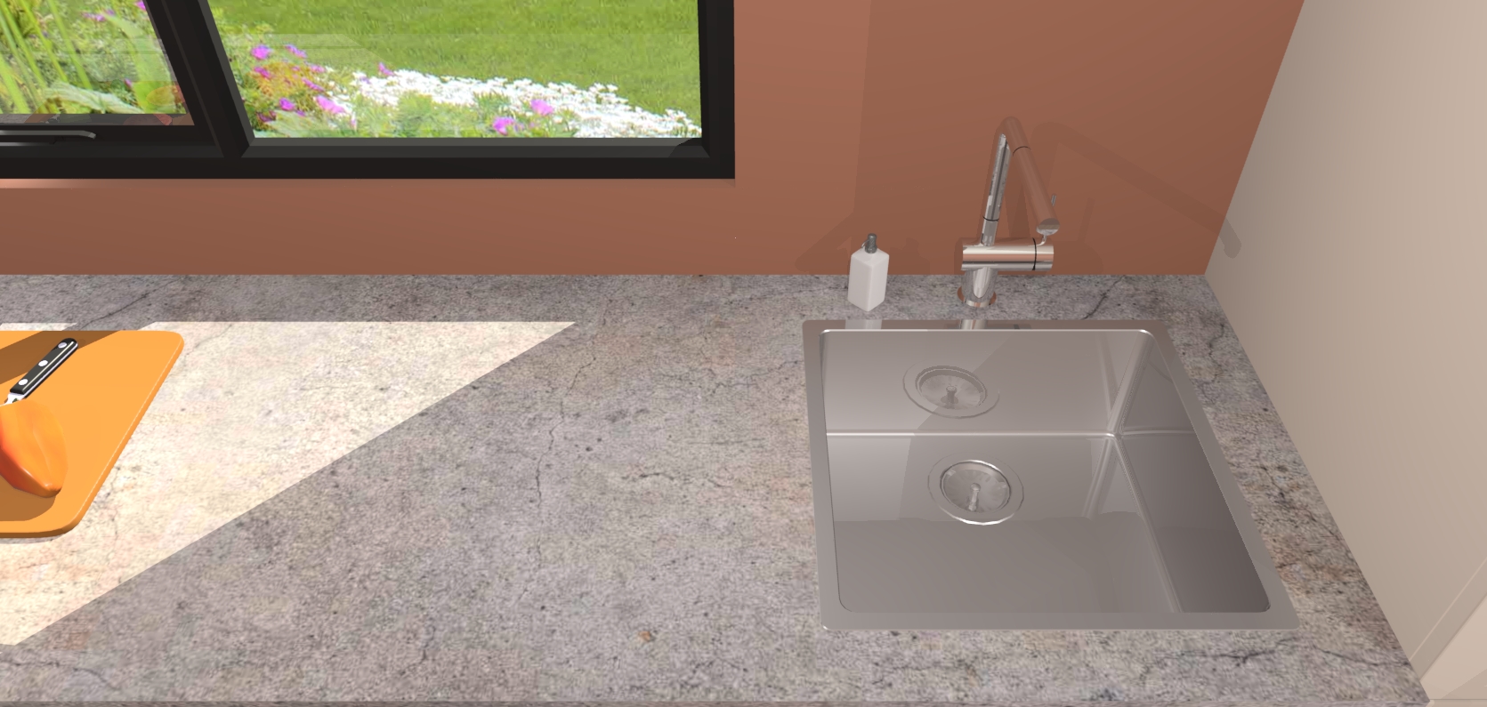 - De spoelbak is nog niet in gevreesd. Dit dient tijdens het werk gedaan te worden