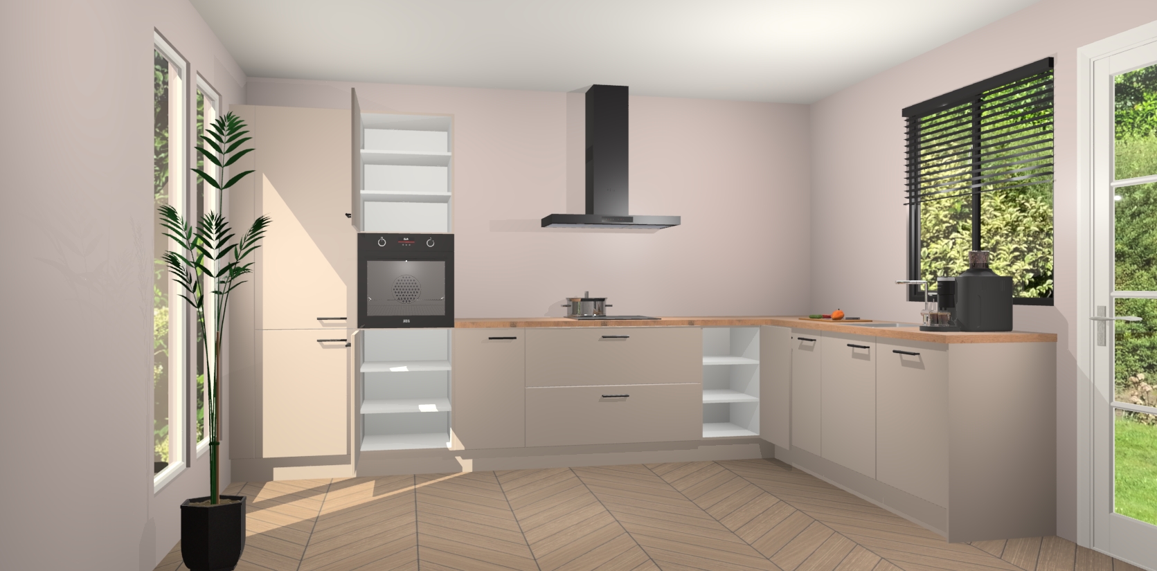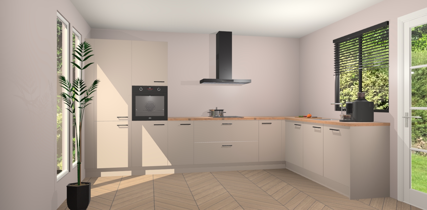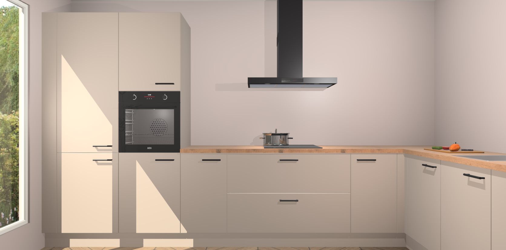 Met een modern, tijdloos design en ruime opslagruimte, zult u zich in no-time thuis voelen in uw nieuwe keuken. Uw leven wordt eenvoudiger met de soft-close deuren die voor het ultieme stille comfort zorgen - geen geluid dat u stoort terwijl u kookt. Ook is de keuken voorzien van 5 ingebouwde apparaten: een oven, inductie kookplaat, afzuigkap, vaatwasser en koelkast. Deze kunnen gemakkelijk na bestelling worden bijgewerkt naar AEG - waardoor uw luxe ervaring compleet is.
