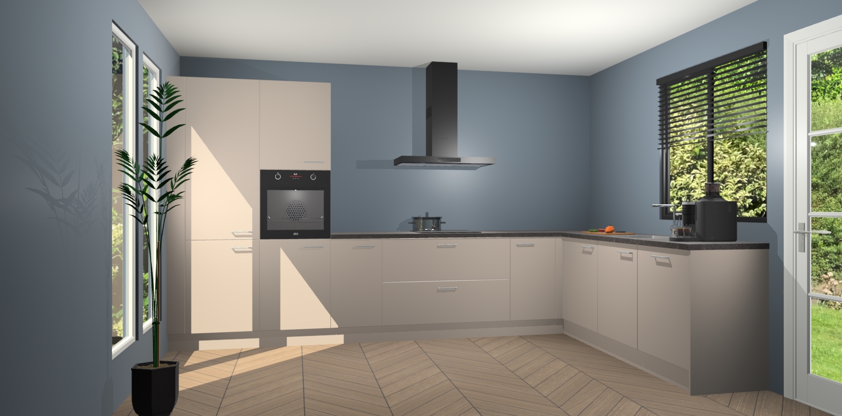 Met een modern, tijdloos design en ruime opslagruimte, zult u zich in no-time thuis voelen in uw nieuwe keuken. Uw leven wordt eenvoudiger met de soft-close deuren die voor het ultieme stille comfort zorgen - geen geluid dat u stoort terwijl u kookt. Ook is de keuken voorzien van 5 ingebouwde apparaten: een oven, inductie kookplaat, afzuigkap, vaatwasser en koelkast. Deze kunnen gemakkelijk na bestelling worden bijgewerkt naar AEG - waardoor uw luxe ervaring compleet is.