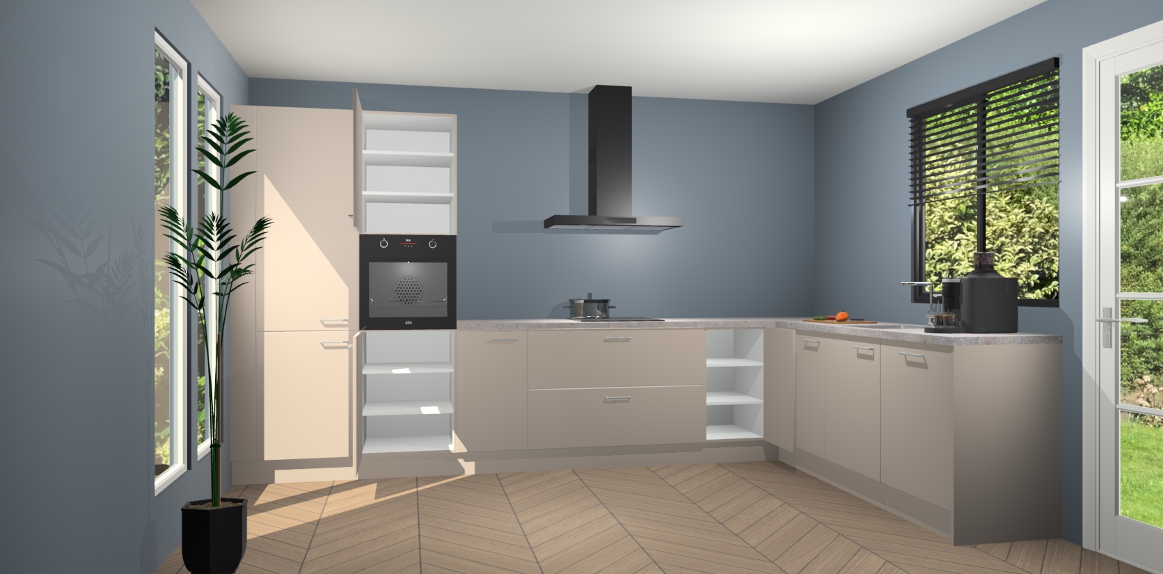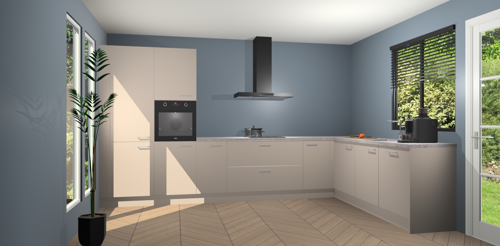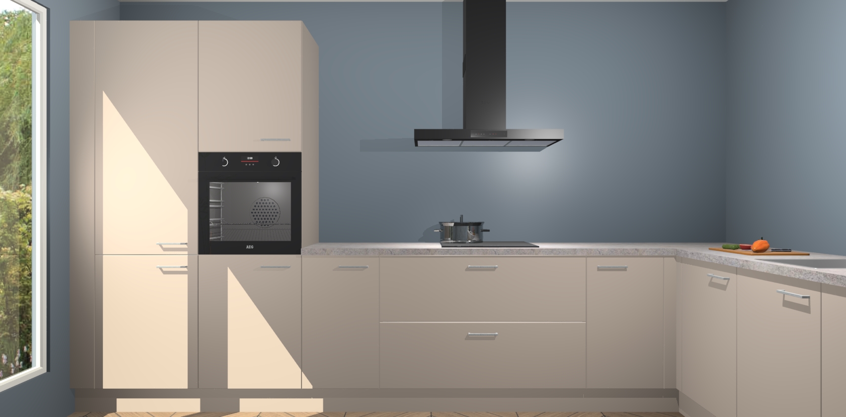 Met een modern, tijdloos design en ruime opslagruimte, zult u zich in no-time thuis voelen in uw nieuwe keuken. Uw leven wordt eenvoudiger met de soft-close deuren die voor het ultieme stille comfort zorgen - geen geluid dat u stoort terwijl u kookt. Ook is de keuken voorzien van 5 ingebouwde apparaten: een oven, inductie kookplaat, afzuigkap, vaatwasser en koelkast. Deze kunnen gemakkelijk na bestelling worden bijgewerkt naar AEG - waardoor uw luxe ervaring compleet is.