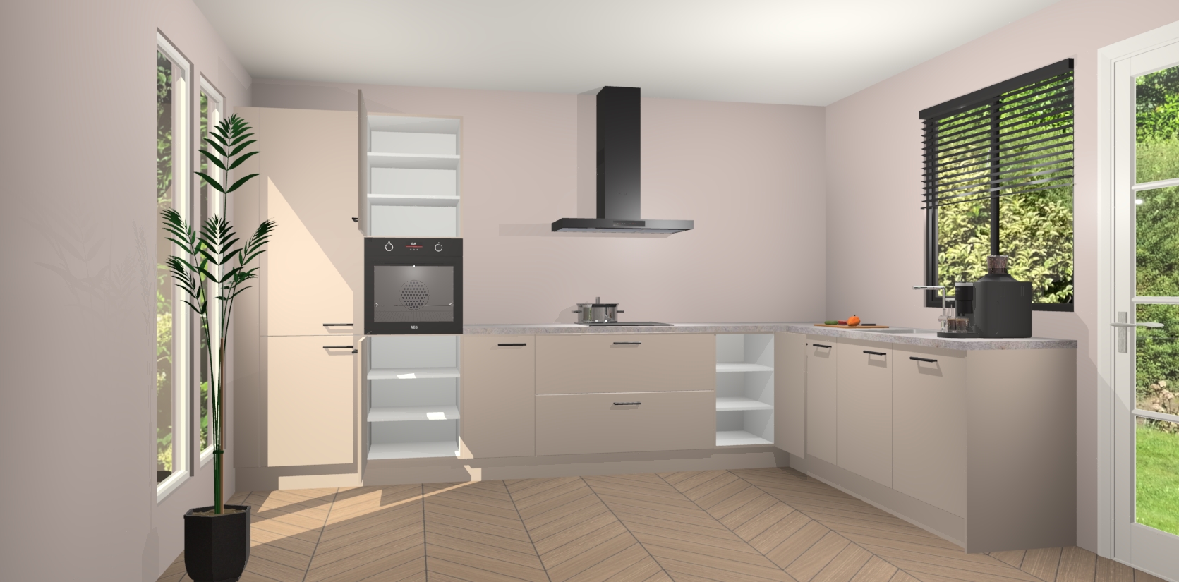 Met een modern, tijdloos design en ruime opslagruimte, zult u zich in no-time thuis voelen in uw nieuwe keuken. Uw leven wordt eenvoudiger met de soft-close deuren die voor het ultieme stille comfort zorgen - geen geluid dat u stoort terwijl u kookt. Ook is de keuken voorzien van 5 ingebouwde apparaten: een oven, inductie kookplaat, afzuigkap, vaatwasser en koelkast. Deze kunnen gemakkelijk na bestelling worden bijgewerkt naar AEG - waardoor uw luxe ervaring compleet is.