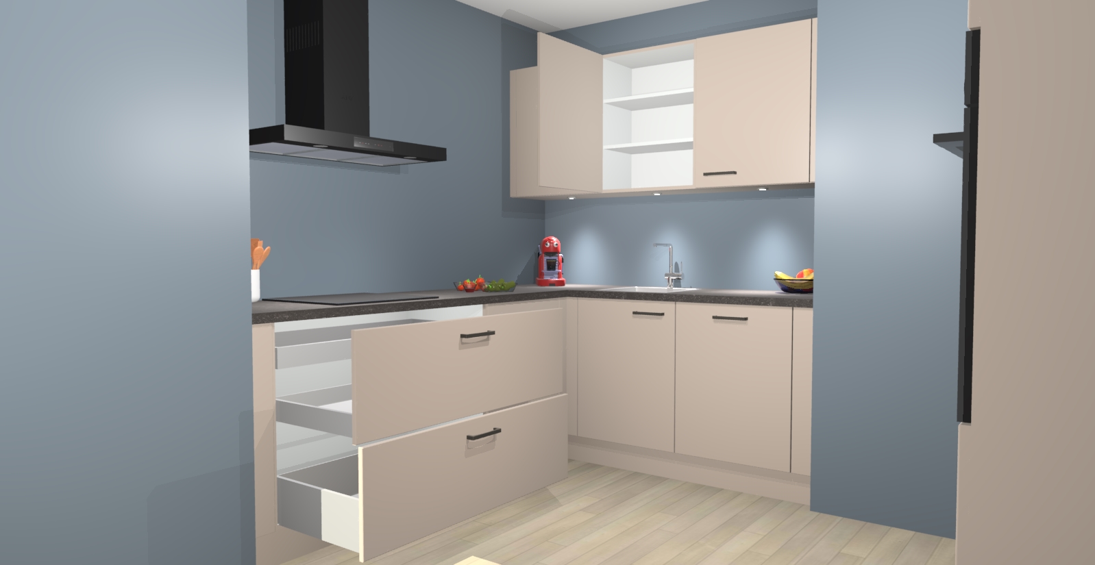 In deze box zijn alle kleuren verzameld van de deuren en werkbladen. Vraag de gratis kleurenbox aan en kijk thuis rustig verder!