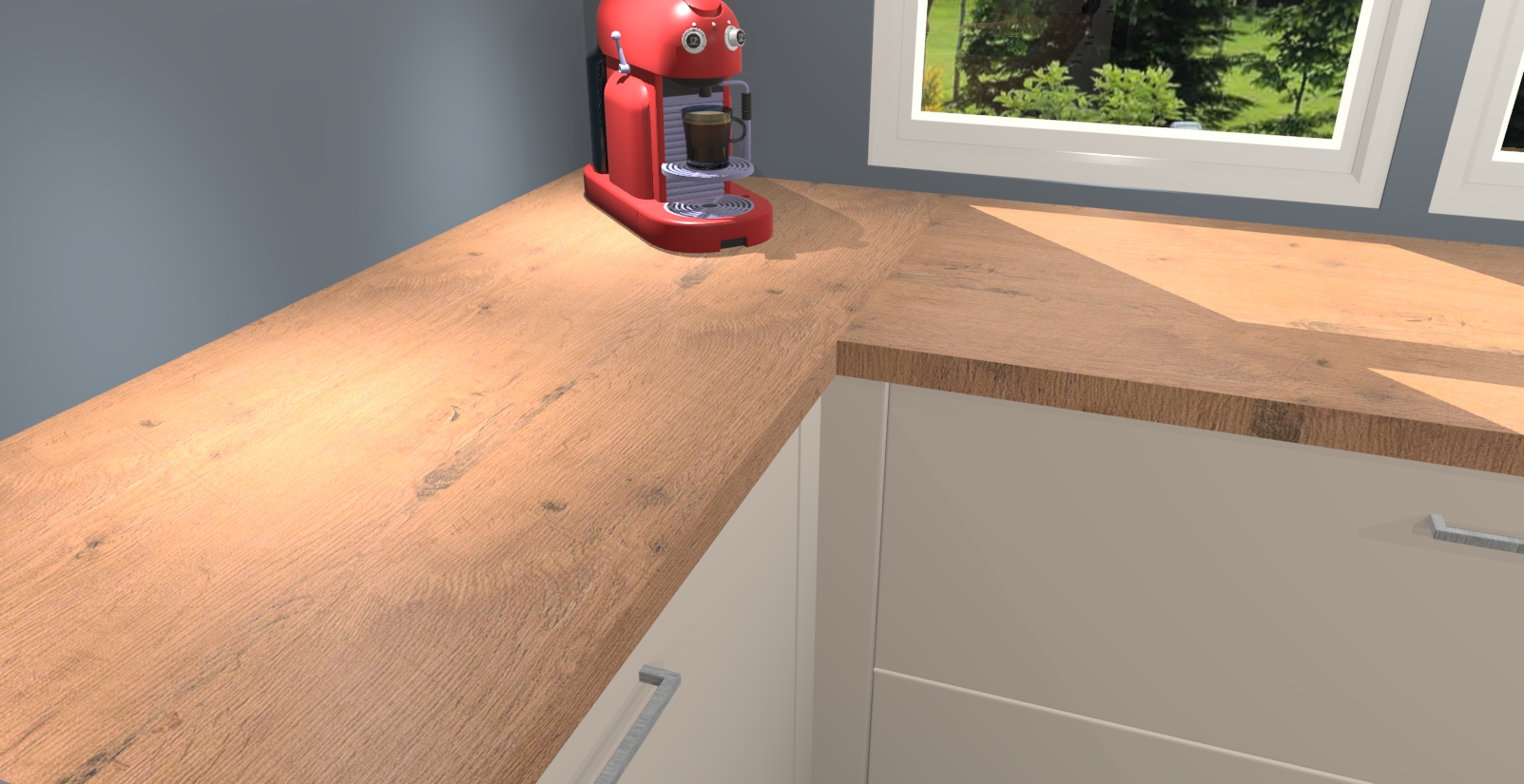 - Bij een hoekwerkblad zijn de hoeken in gevreesd en op maat gemaakt