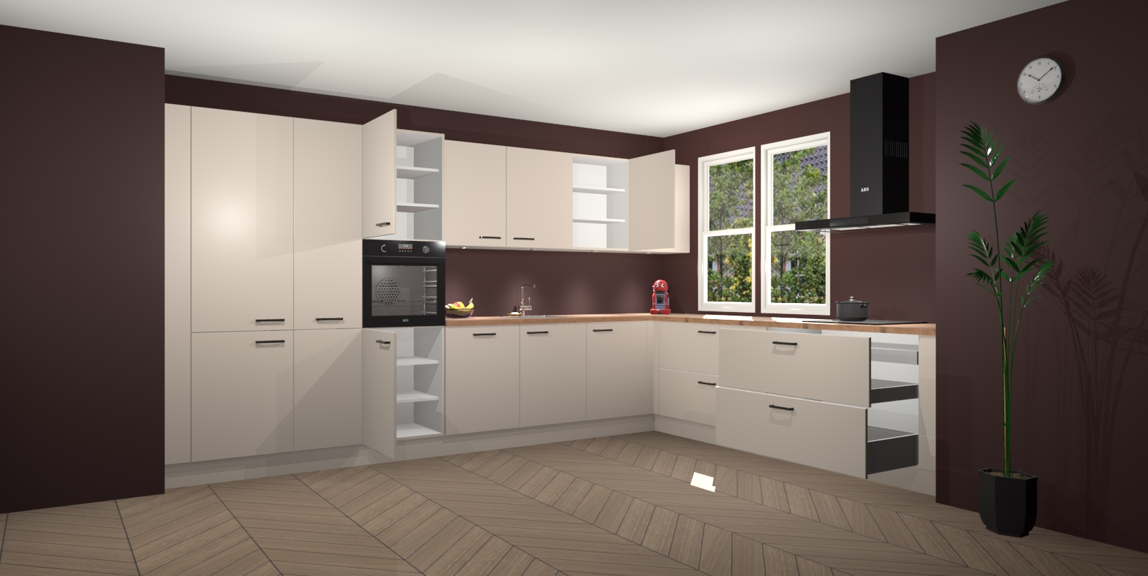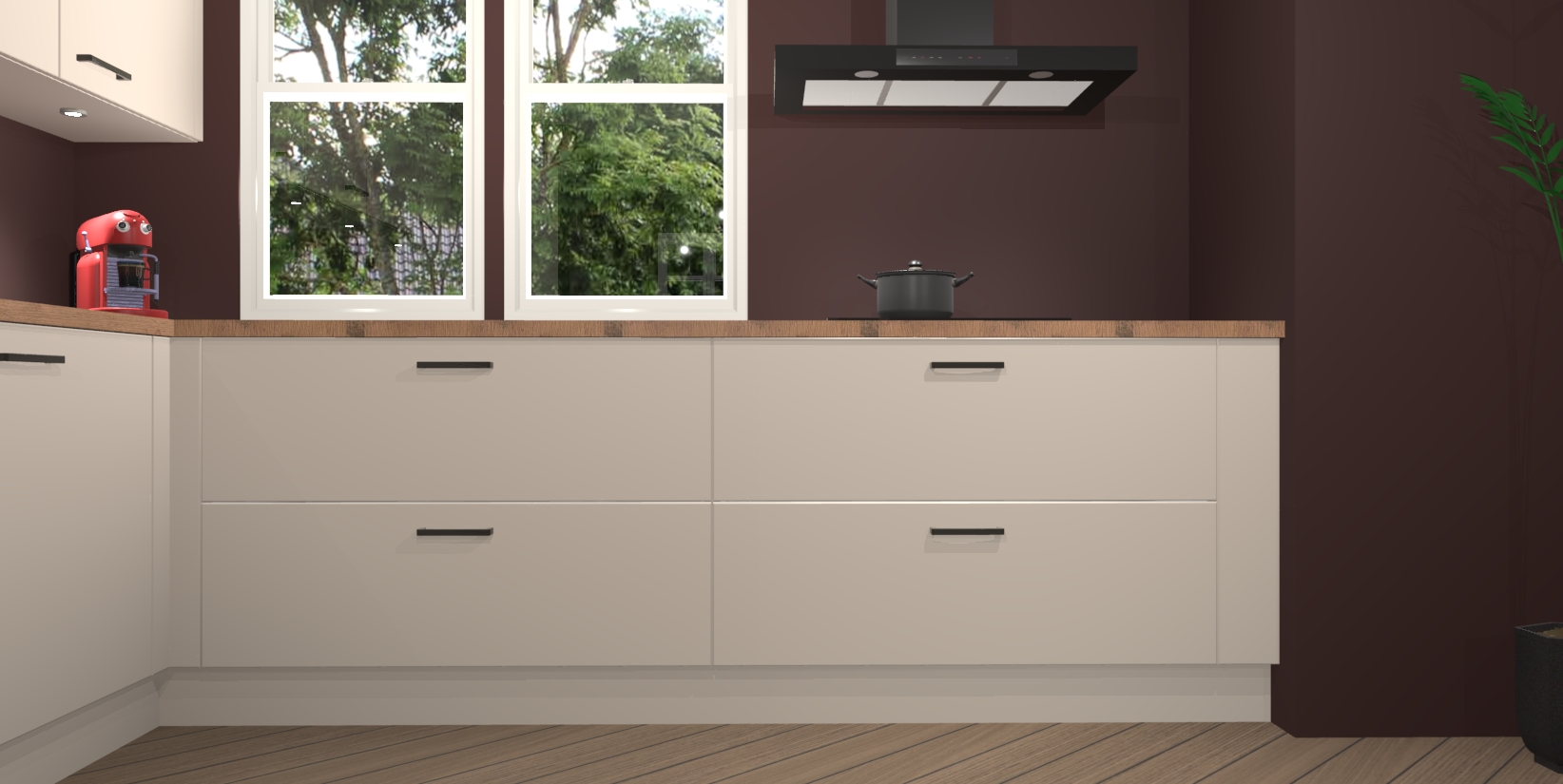 Inclusief plinten, stelpoten en werkblad