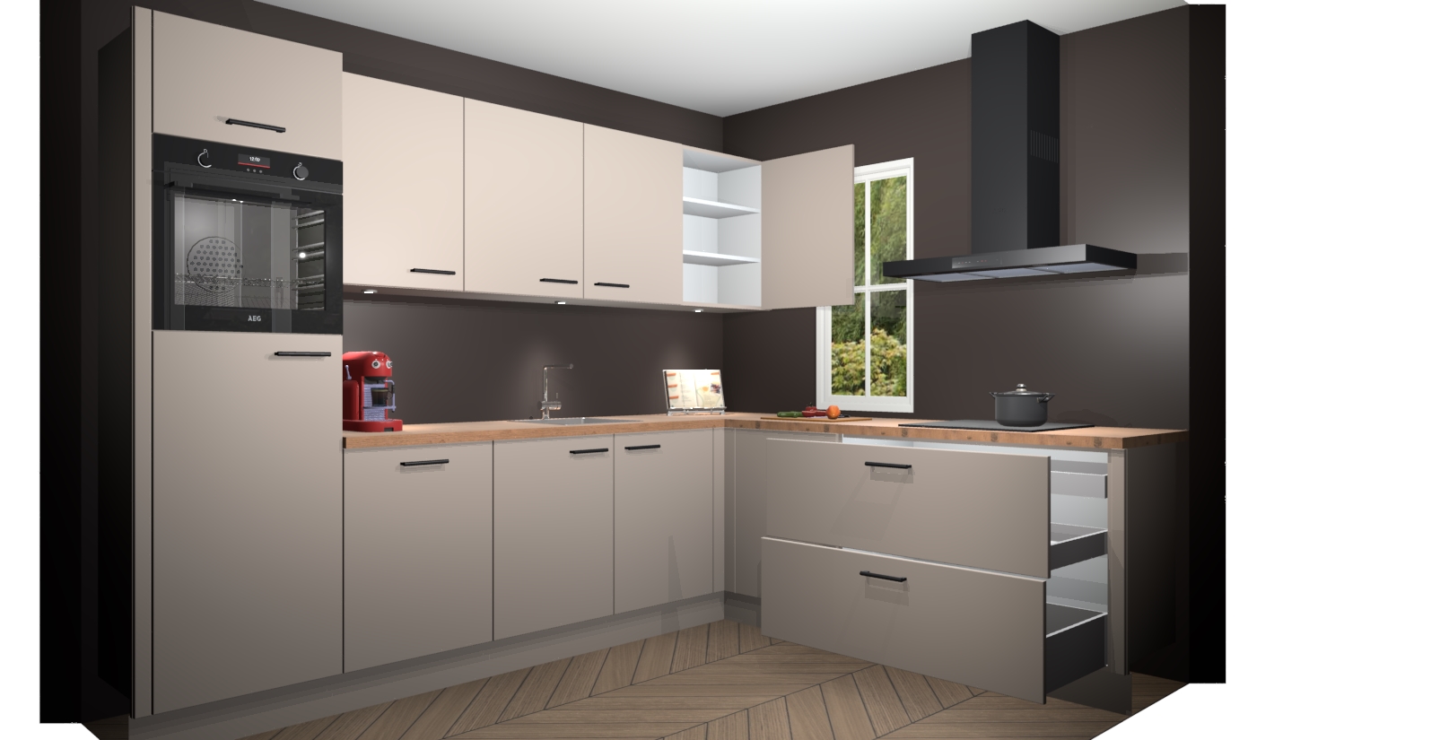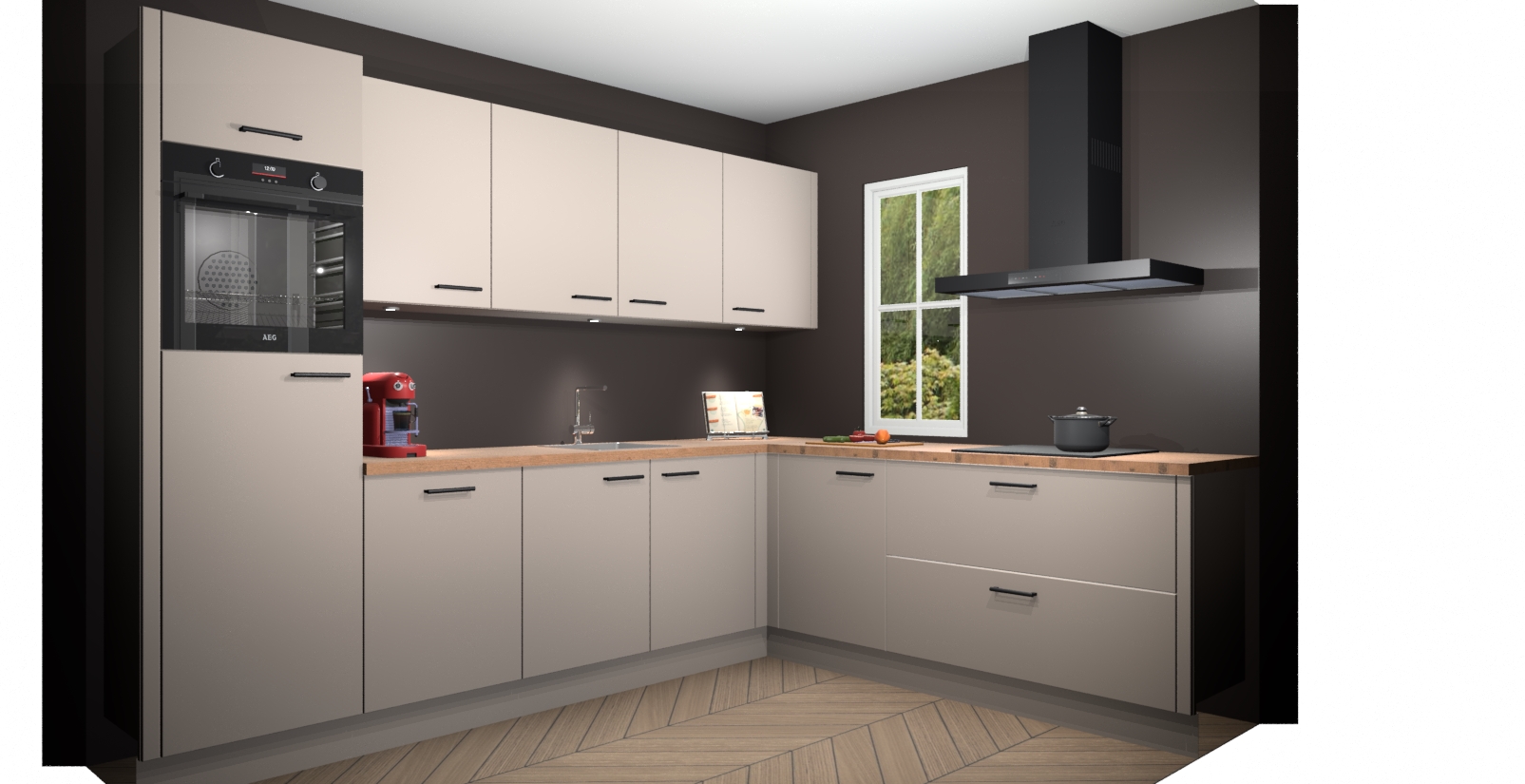 Inclusief plinten, stelpoten en werkblad