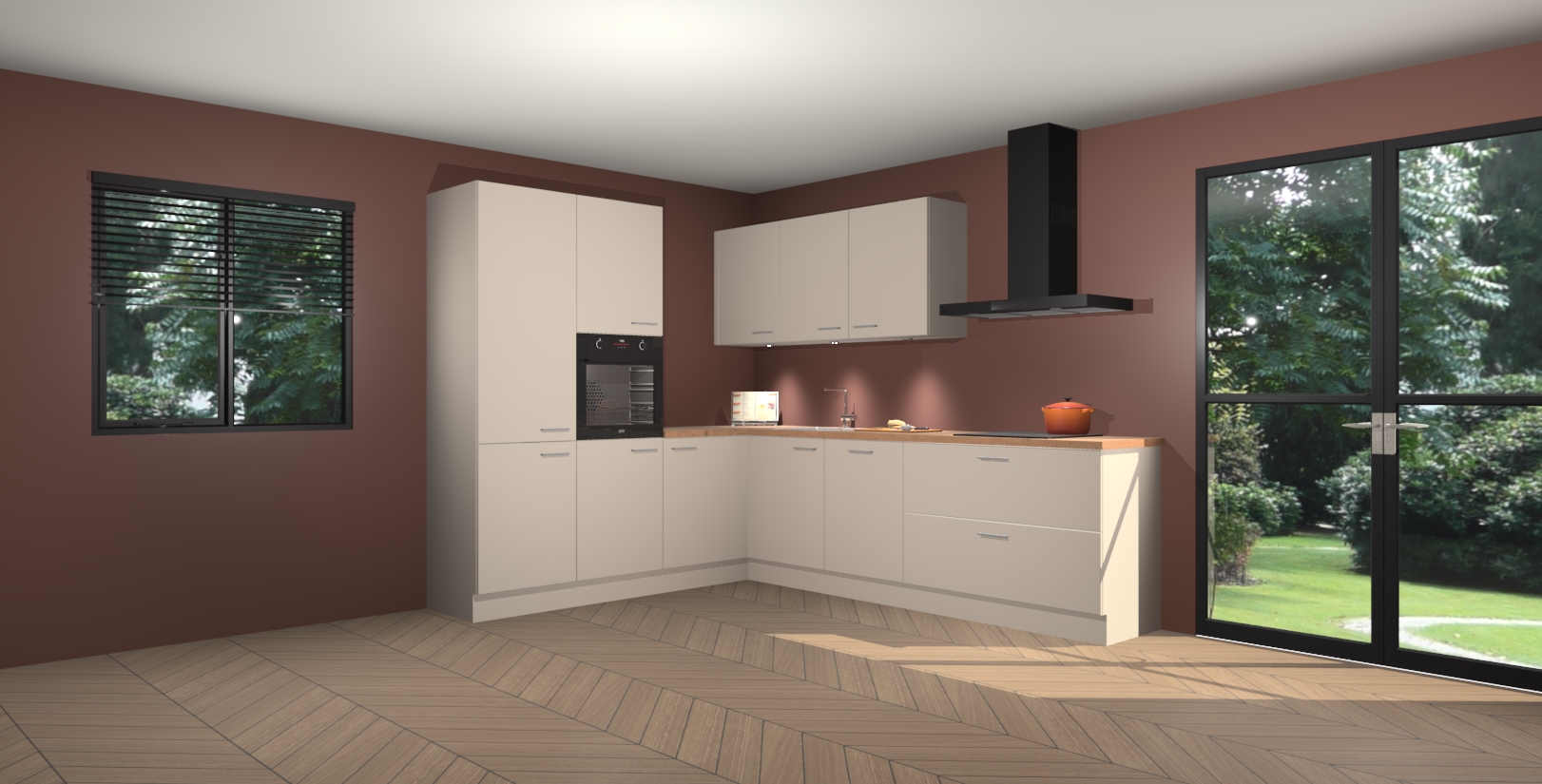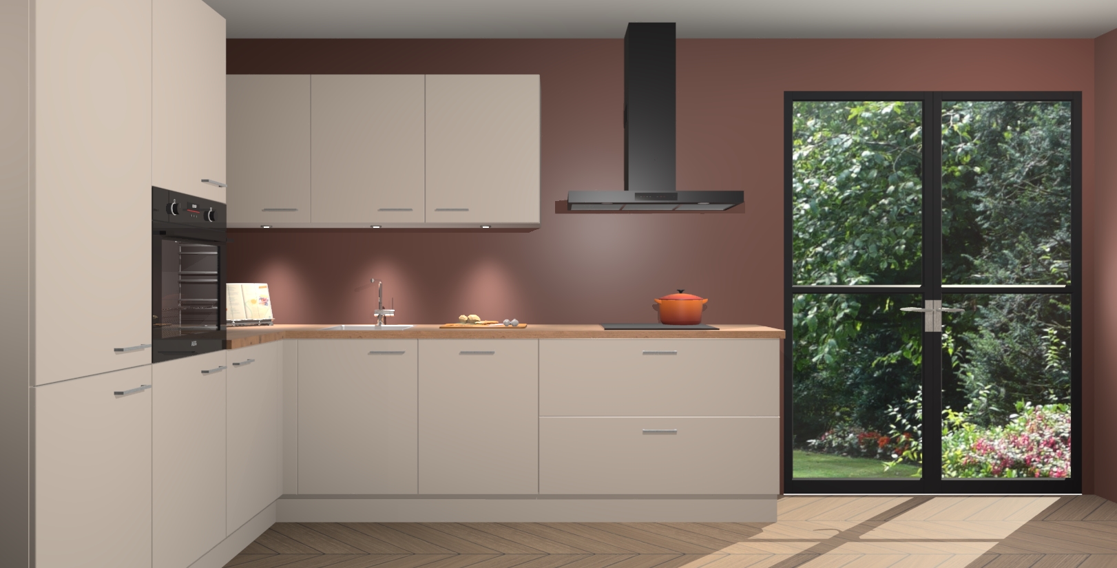 Maak kennis met de kasjmier keuken Parla - de perfecte aanvulling voor uw moderne keuken! Ervaar tijdloos design, elegantie en een chique uitstraling met onze zwarte handgrepen, soft-close deuren en veel opbergruimte. Dit alles wordt aangeboden tegen een vaste lage prijs voor ongeëvenaarde Duitse keukenkwaliteit!