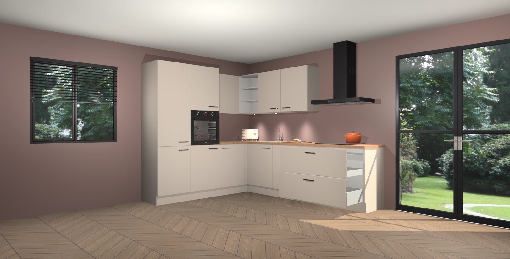 Maak kennis met de kasjmier keuken Parla - de perfecte aanvulling voor uw moderne keuken! Ervaar tijdloos design, elegantie en een chique uitstraling met onze zwarte handgrepen, soft-close deuren en veel opbergruimte. Dit alles wordt aangeboden tegen een vaste lage prijs voor ongeëvenaarde Duitse keukenkwaliteit!
