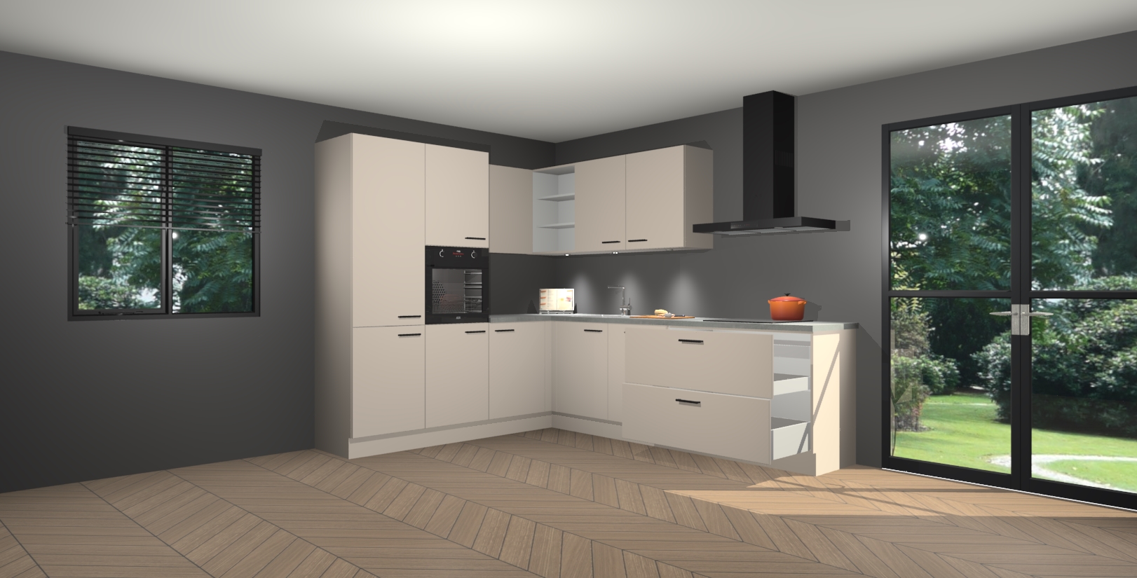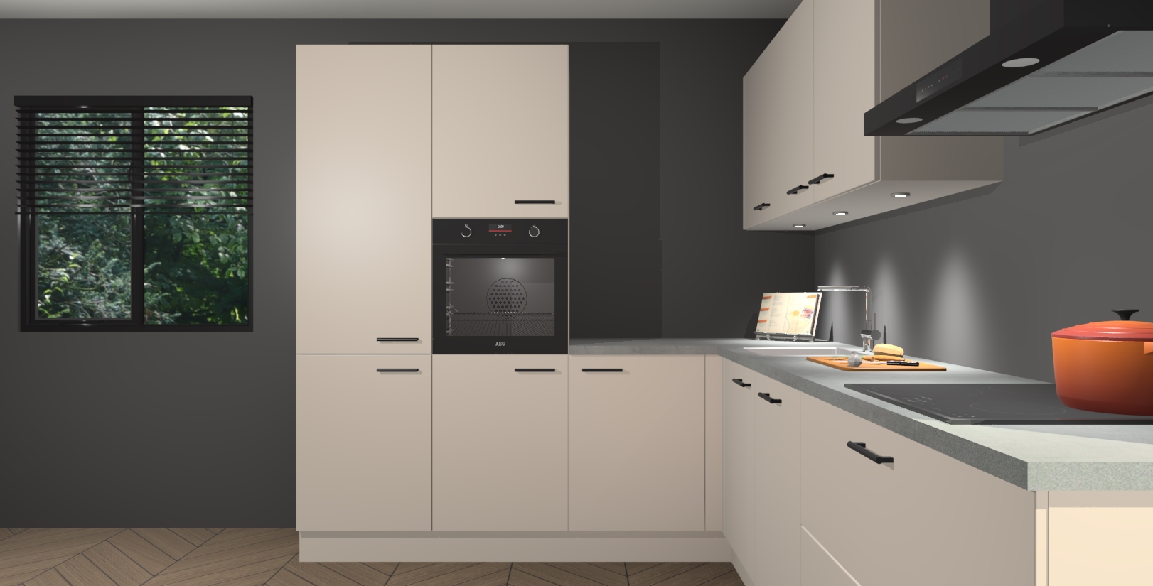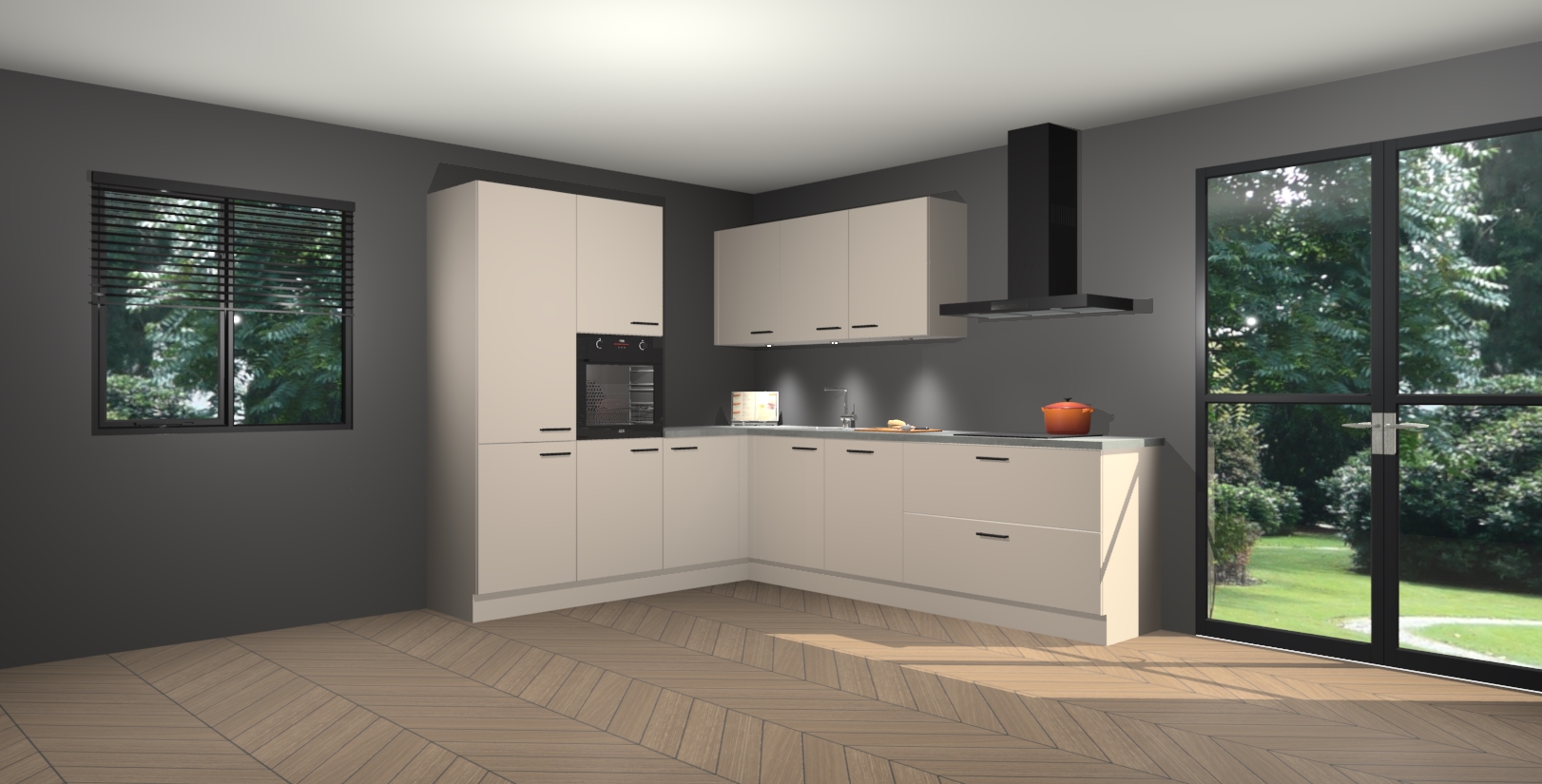 Maak kennis met de kasjmier keuken Parla - de perfecte aanvulling voor uw moderne keuken! Ervaar tijdloos design, elegantie en een chique uitstraling met onze zwarte handgrepen, soft-close deuren en veel opbergruimte. Dit alles wordt aangeboden tegen een vaste lage prijs voor ongeëvenaarde Duitse keukenkwaliteit!