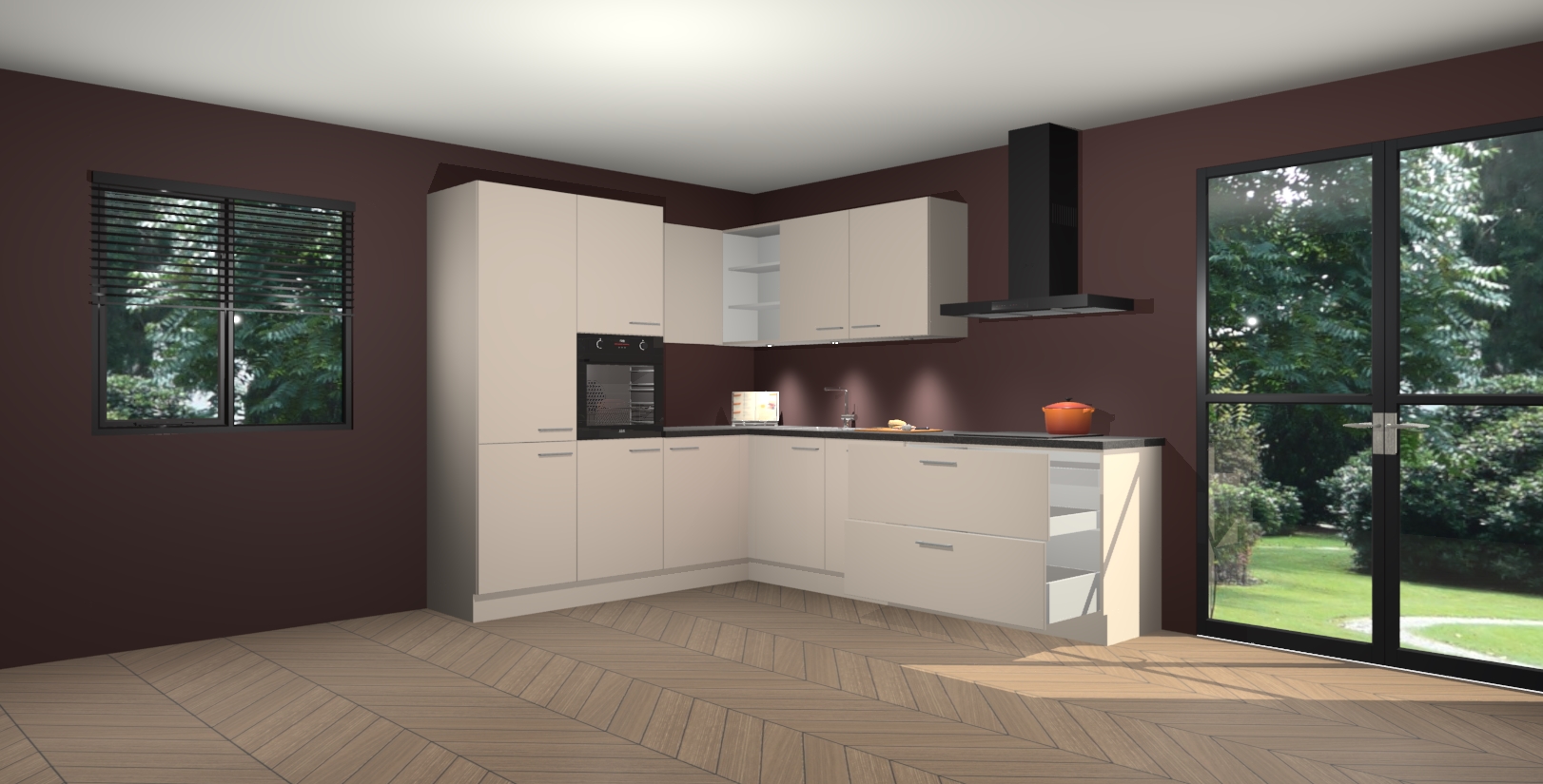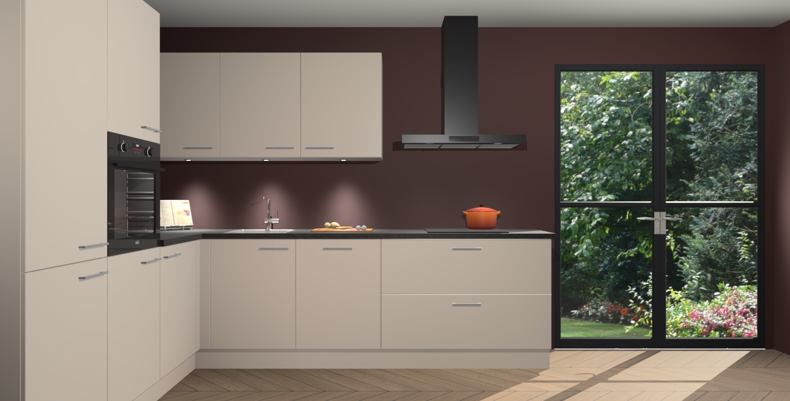 Maak kennis met de kasjmier keuken Parla - de perfecte aanvulling voor uw moderne keuken! Ervaar tijdloos design, elegantie en een chique uitstraling met onze zwarte handgrepen, soft-close deuren en veel opbergruimte. Dit alles wordt aangeboden tegen een vaste lage prijs voor ongeëvenaarde Duitse keukenkwaliteit!