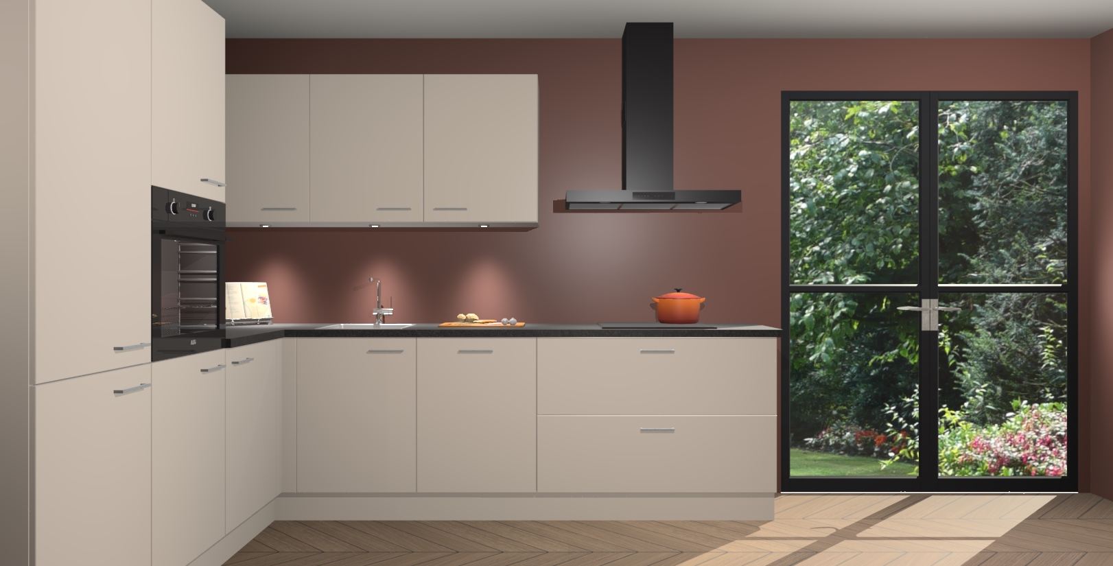 Maak kennis met de kasjmier keuken Parla - de perfecte aanvulling voor uw moderne keuken! Ervaar tijdloos design, elegantie en een chique uitstraling met onze zwarte handgrepen, soft-close deuren en veel opbergruimte. Dit alles wordt aangeboden tegen een vaste lage prijs voor ongeëvenaarde Duitse keukenkwaliteit!