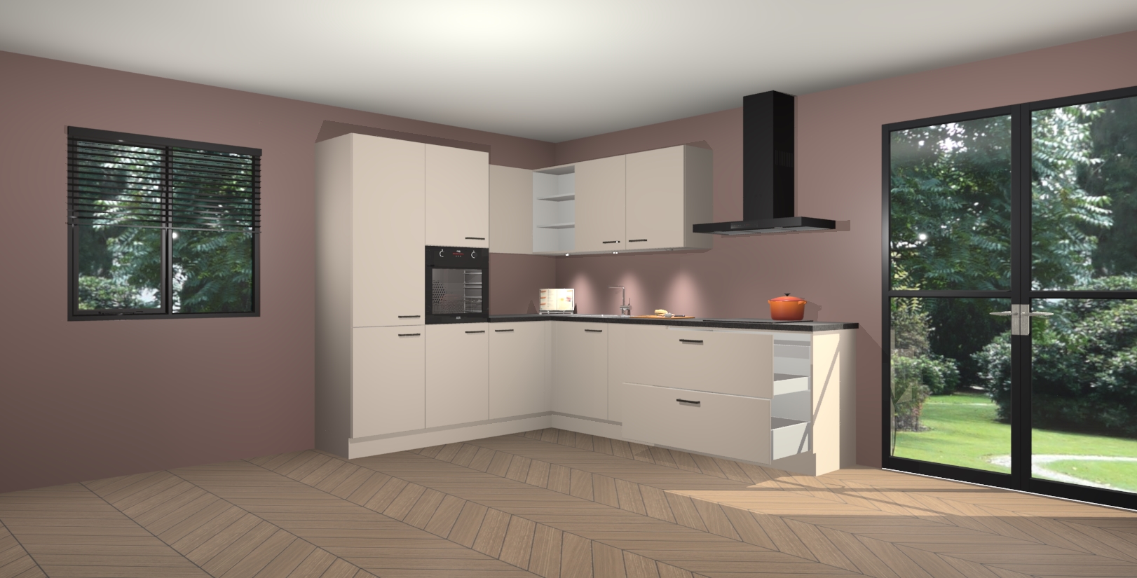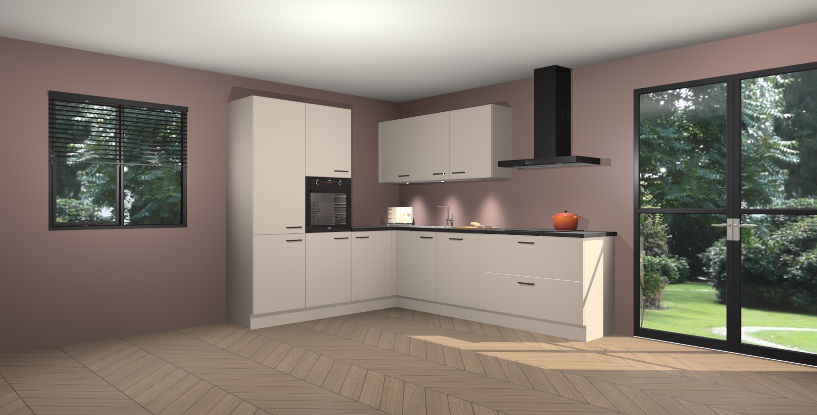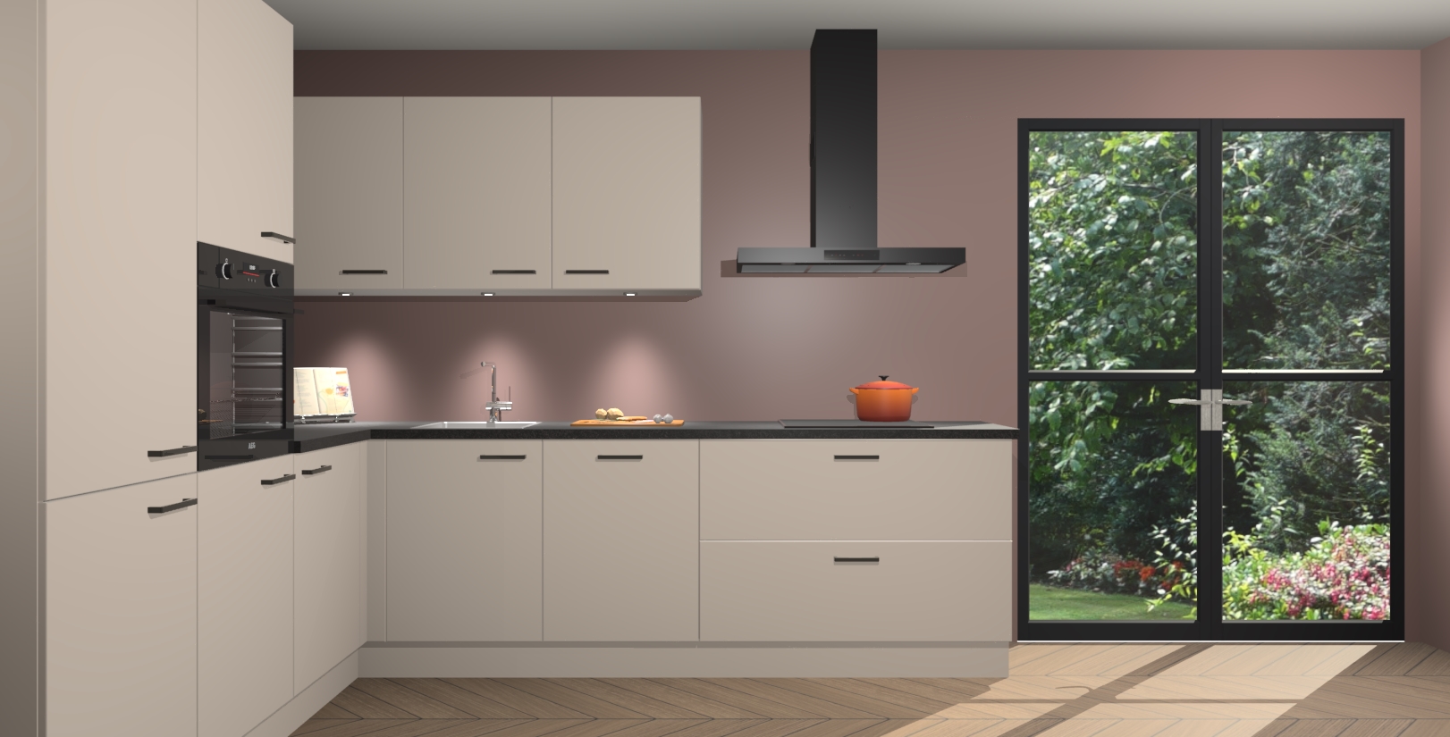 Maak kennis met de kasjmier keuken Parla - de perfecte aanvulling voor uw moderne keuken! Ervaar tijdloos design, elegantie en een chique uitstraling met onze zwarte handgrepen, soft-close deuren en veel opbergruimte. Dit alles wordt aangeboden tegen een vaste lage prijs voor ongeëvenaarde Duitse keukenkwaliteit!