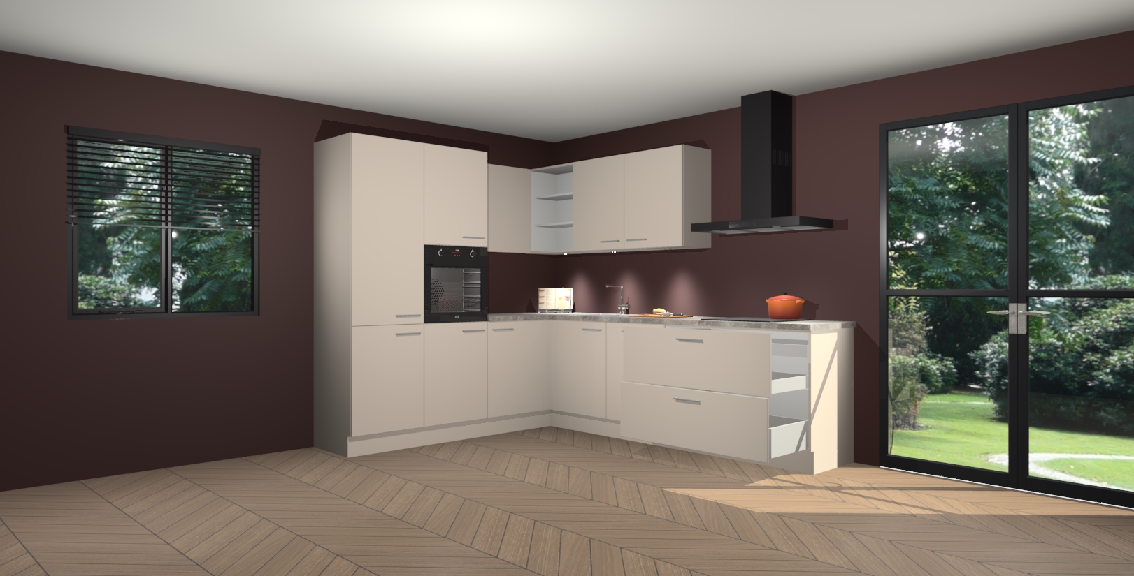 Maak kennis met de kasjmier keuken Parla - de perfecte aanvulling voor uw moderne keuken! Ervaar tijdloos design, elegantie en een chique uitstraling met onze zwarte handgrepen, soft-close deuren en veel opbergruimte. Dit alles wordt aangeboden tegen een vaste lage prijs voor ongeëvenaarde Duitse keukenkwaliteit!