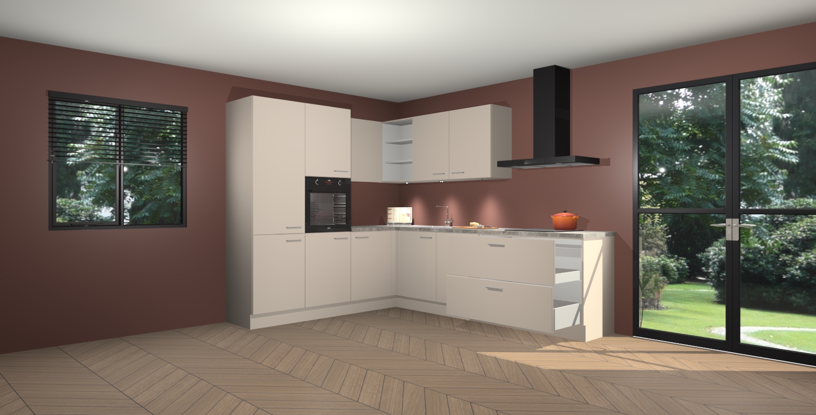 Maak kennis met de kasjmier keuken Parla - de perfecte aanvulling voor uw moderne keuken! Ervaar tijdloos design, elegantie en een chique uitstraling met onze zwarte handgrepen, soft-close deuren en veel opbergruimte. Dit alles wordt aangeboden tegen een vaste lage prijs voor ongeëvenaarde Duitse keukenkwaliteit!