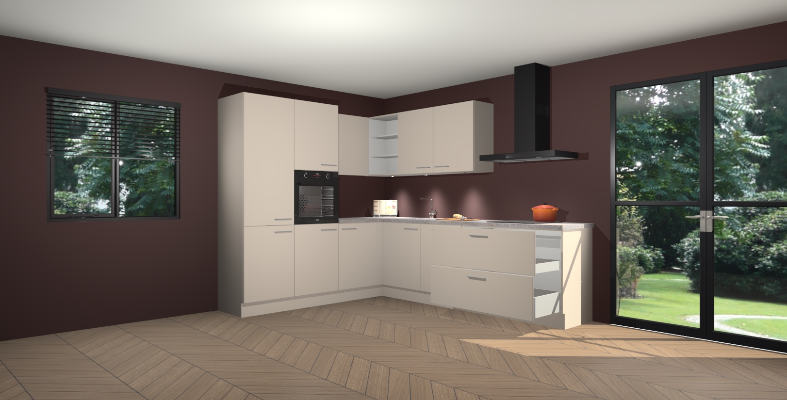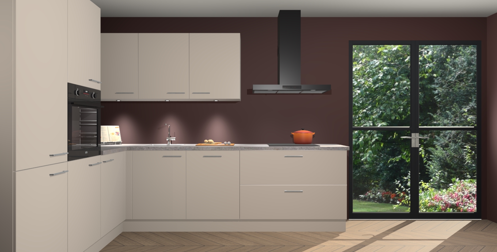Maak kennis met de kasjmier keuken Parla - de perfecte aanvulling voor uw moderne keuken! Ervaar tijdloos design, elegantie en een chique uitstraling met onze zwarte handgrepen, soft-close deuren en veel opbergruimte. Dit alles wordt aangeboden tegen een vaste lage prijs voor ongeëvenaarde Duitse keukenkwaliteit!