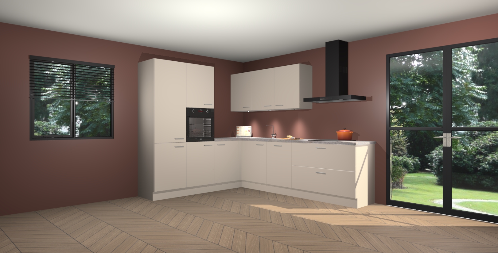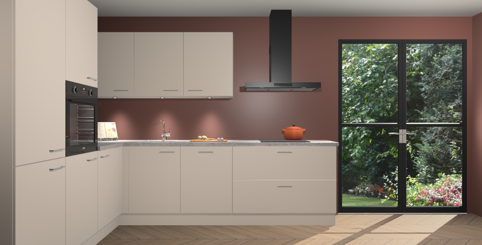 Maak kennis met de kasjmier keuken Parla - de perfecte aanvulling voor uw moderne keuken! Ervaar tijdloos design, elegantie en een chique uitstraling met onze zwarte handgrepen, soft-close deuren en veel opbergruimte. Dit alles wordt aangeboden tegen een vaste lage prijs voor ongeëvenaarde Duitse keukenkwaliteit!