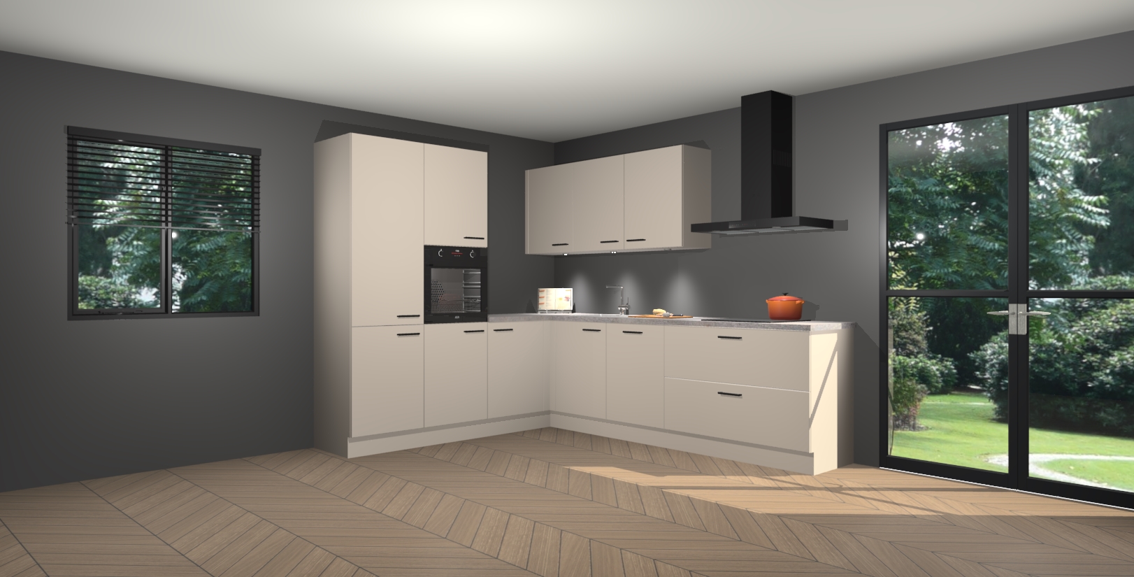Maak kennis met de kasjmier keuken Parla - de perfecte aanvulling voor uw moderne keuken! Ervaar tijdloos design, elegantie en een chique uitstraling met onze zwarte handgrepen, soft-close deuren en veel opbergruimte. Dit alles wordt aangeboden tegen een vaste lage prijs voor ongeëvenaarde Duitse keukenkwaliteit!