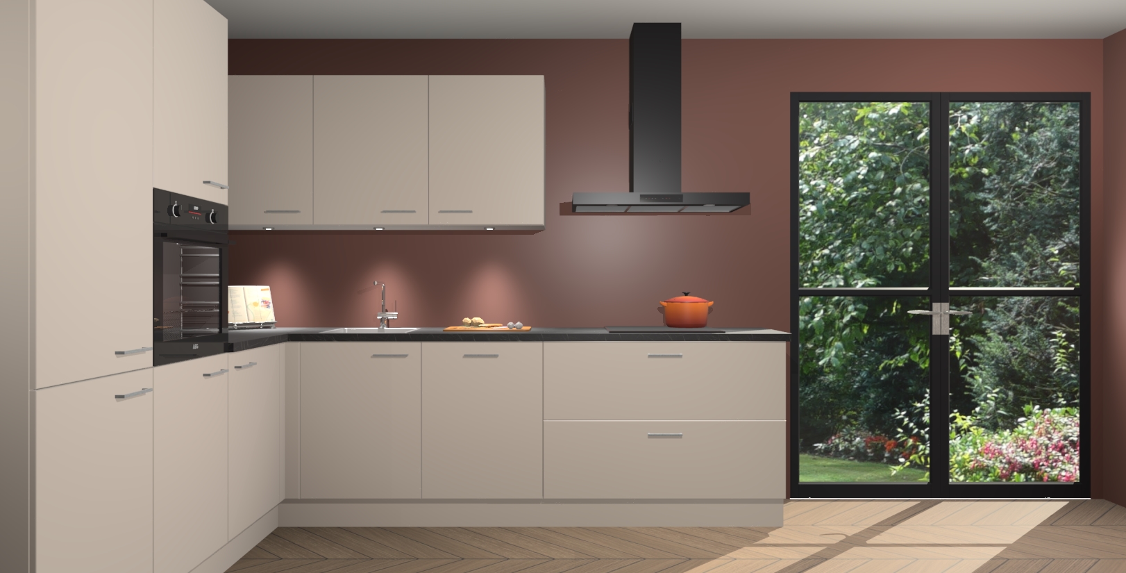 Maak kennis met de kasjmier keuken Parla - de perfecte aanvulling voor uw moderne keuken! Ervaar tijdloos design, elegantie en een chique uitstraling met onze zwarte handgrepen, soft-close deuren en veel opbergruimte. Dit alles wordt aangeboden tegen een vaste lage prijs voor ongeëvenaarde Duitse keukenkwaliteit!