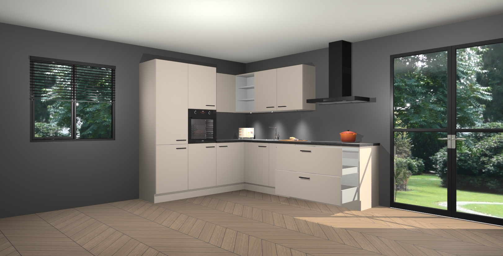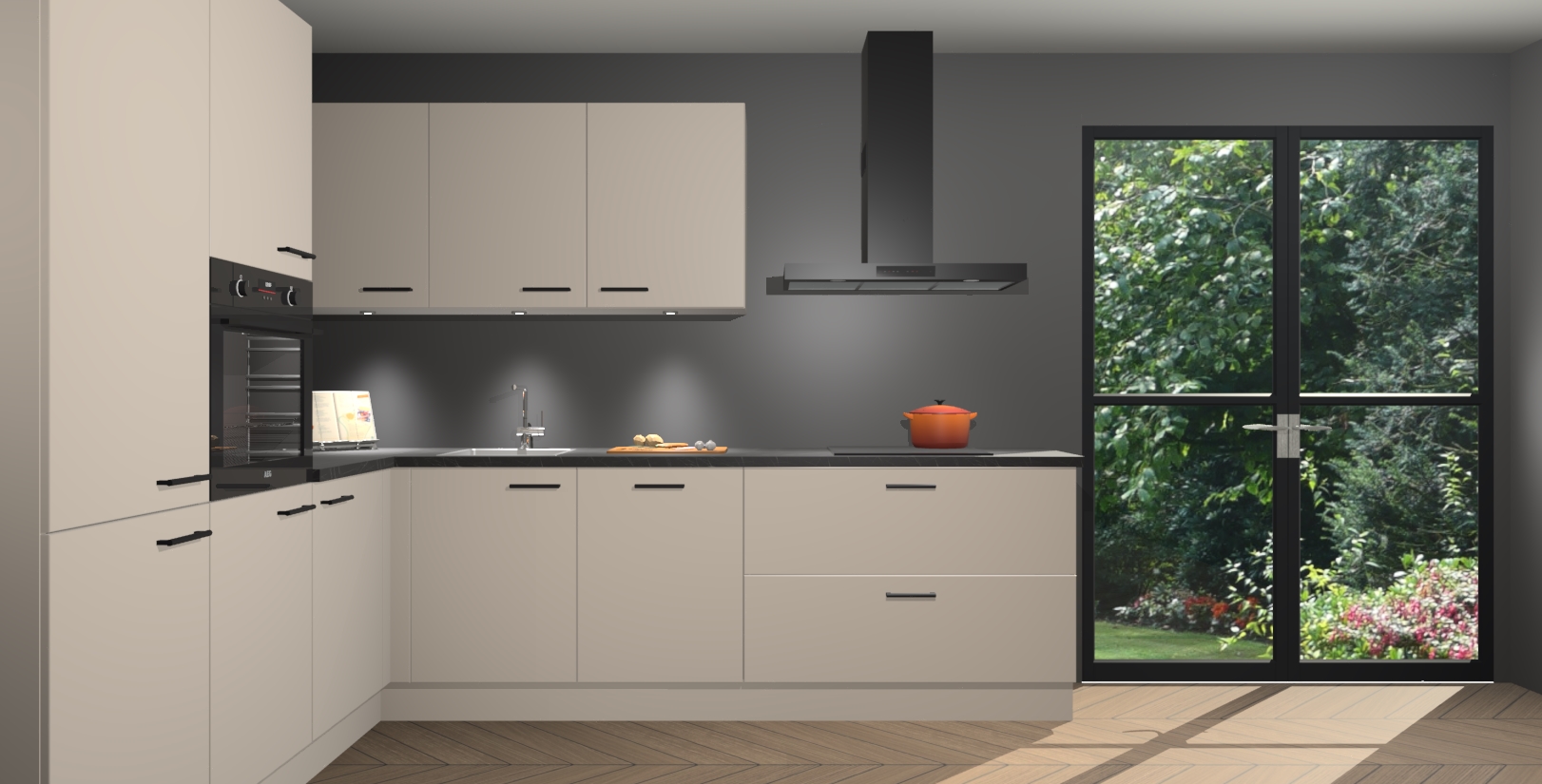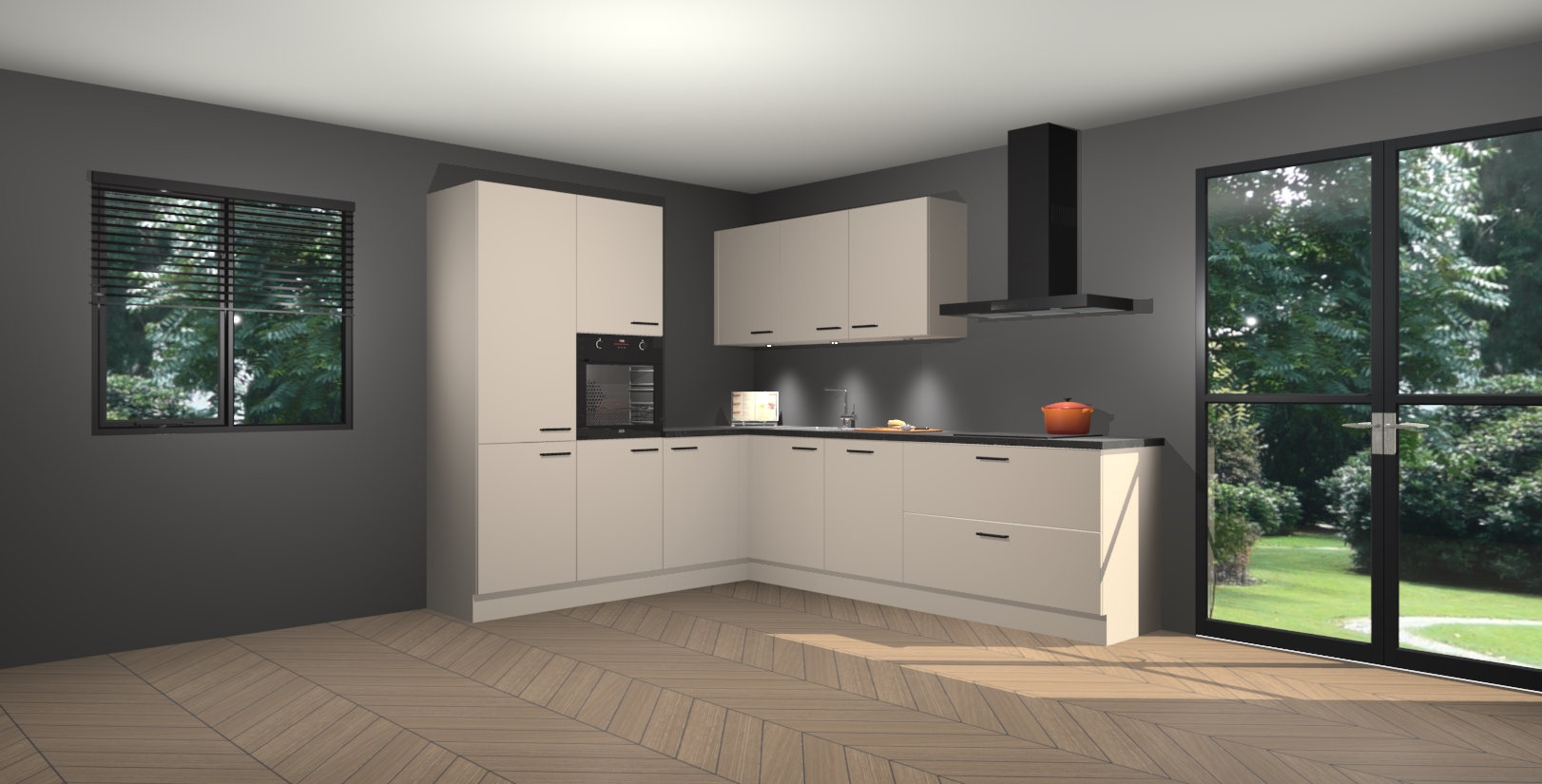 Maak kennis met de kasjmier keuken Parla - de perfecte aanvulling voor uw moderne keuken! Ervaar tijdloos design, elegantie en een chique uitstraling met onze zwarte handgrepen, soft-close deuren en veel opbergruimte. Dit alles wordt aangeboden tegen een vaste lage prijs voor ongeëvenaarde Duitse keukenkwaliteit!