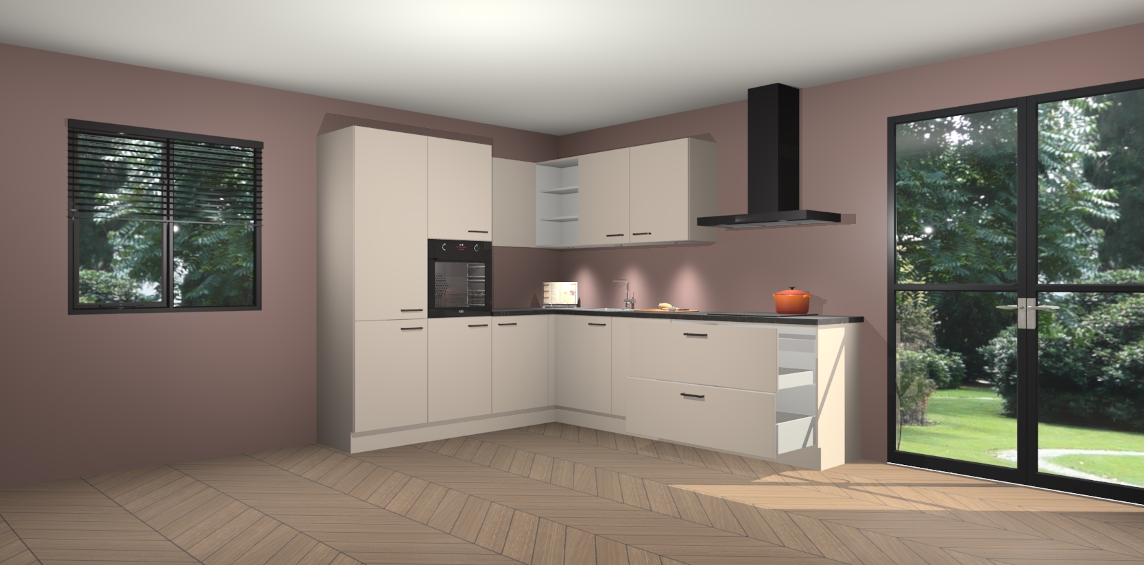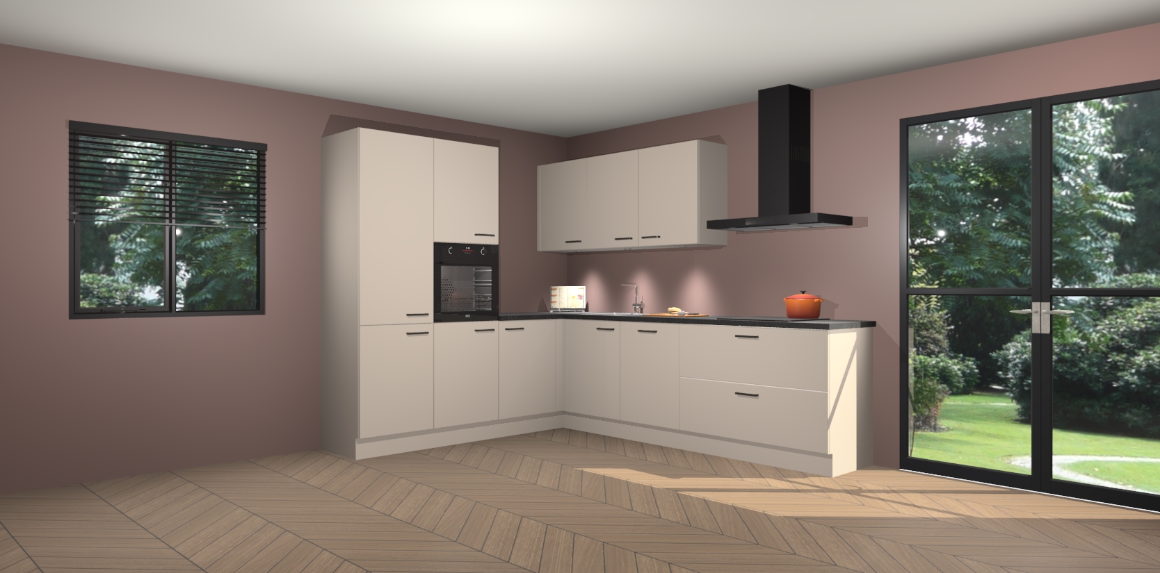 Maak kennis met de kasjmier keuken Parla - de perfecte aanvulling voor uw moderne keuken! Ervaar tijdloos design, elegantie en een chique uitstraling met onze zwarte handgrepen, soft-close deuren en veel opbergruimte. Dit alles wordt aangeboden tegen een vaste lage prijs voor ongeëvenaarde Duitse keukenkwaliteit!