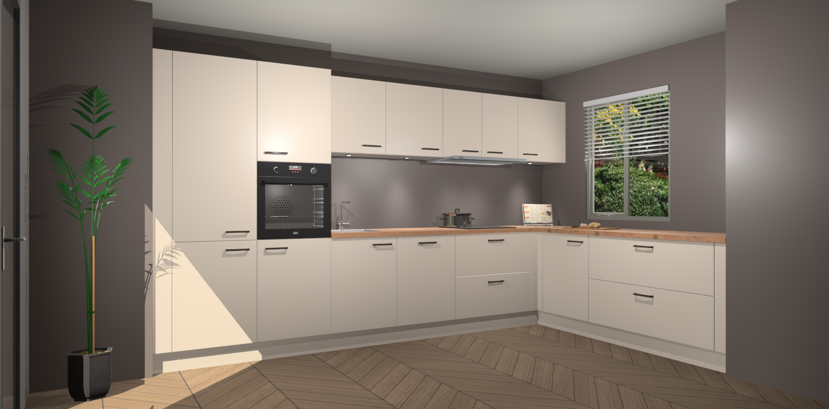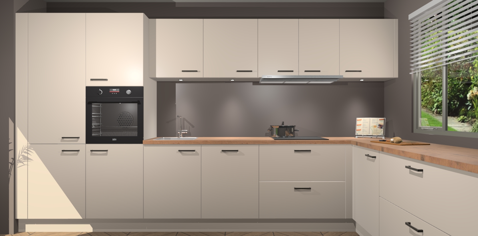 Verwelkom de natuurlijke warmte van de Kasjmier keuken Petten in uw huis. Deze prachtige hoekkeuken met zijn moderne design en warme houten look geeft u meer dan genoeg opbergruimte om uw comfortabel te voelen in uw keuken. Geniet van soft-close deuren die al uw gasten het gevoel zullen geven dat ze zich in een luxueuze ruimte bevinden.