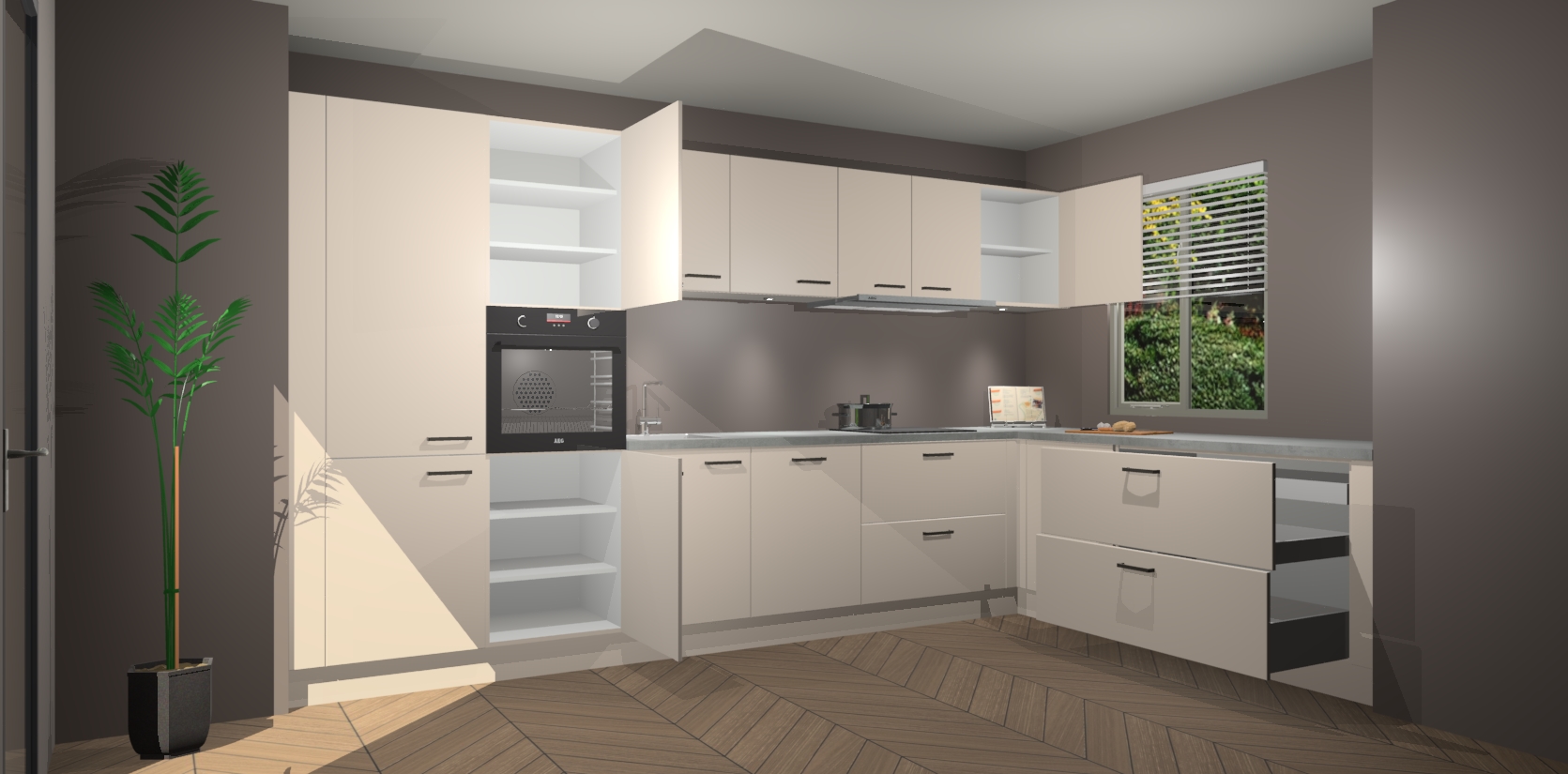 In deze box zijn alle kleuren verzameld van de deuren en werkbladen. Vraag de gratis kleurenbox aan en kijk thuis rustig verder!