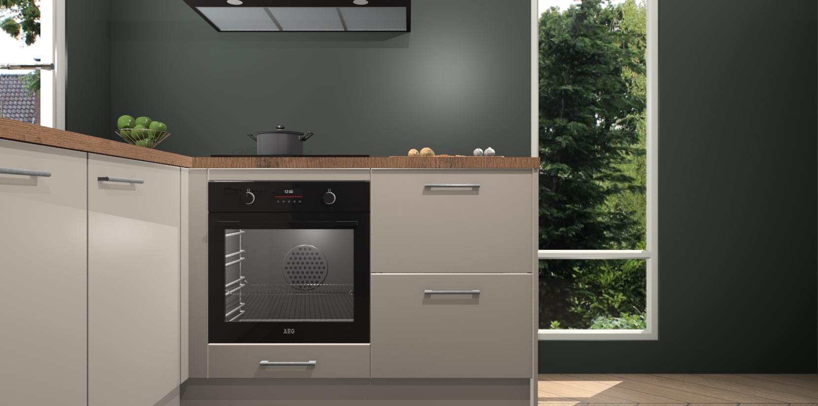 De Kasjmier keuken Phuket heeft alles wat u maar kunt wensen. Niet alleen zijn er softclose deuren, maar ook 5 ingebouwde apparaten: een oven, inductiekookplaat, afzuigkap, vaatwasser en koelkast - waarbij u later gemakkelijk naar het AEG merk, van inductiekookplaat naar kookplaat met geïntegreerde afzuiging of van oven naar combimagnetron kunt upgraden. Dat alles tegen een vast laag tarief! Bovendien geeft de Kasjmier keuken Phuket supersnelle levering van 7 weken. Echt iets voor u als u er niet op wilt wachten om het resultaat te zien in eigen keuken!